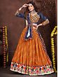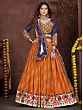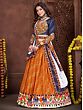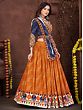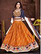 Blue-Mustard Cotton Silk Bandhani Bundi Pattern Multicolor Embroidered Hem Navratri Lehenga Choli With Chiffon Dupatta
