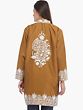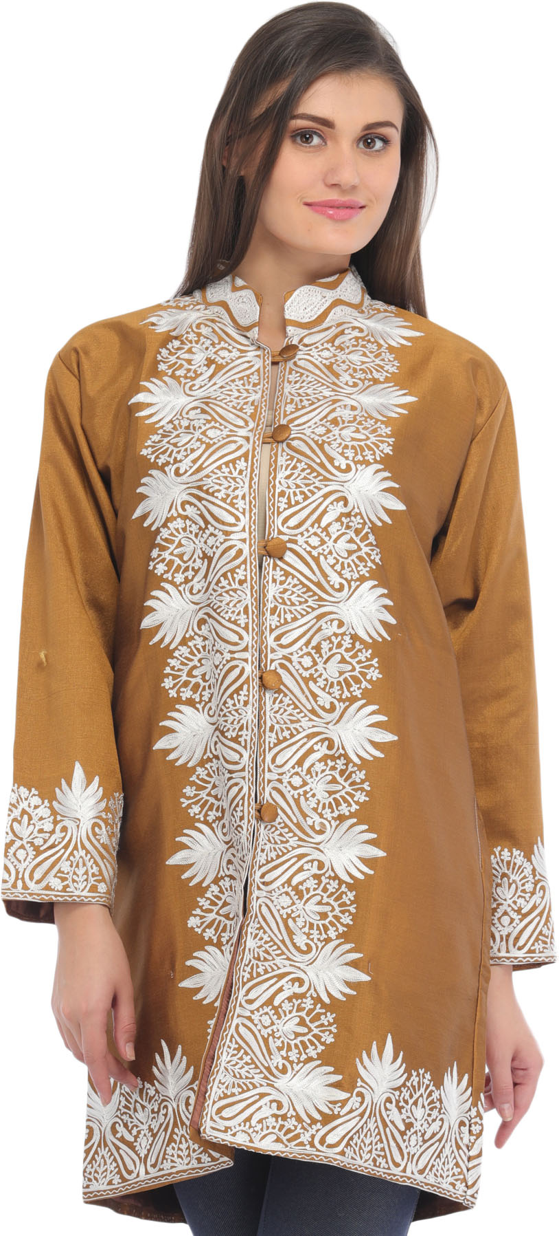 Brazilian-Sand Pure Silk Short Jacket from Kashmir with Floral Vine Aari Embroidery by Hand