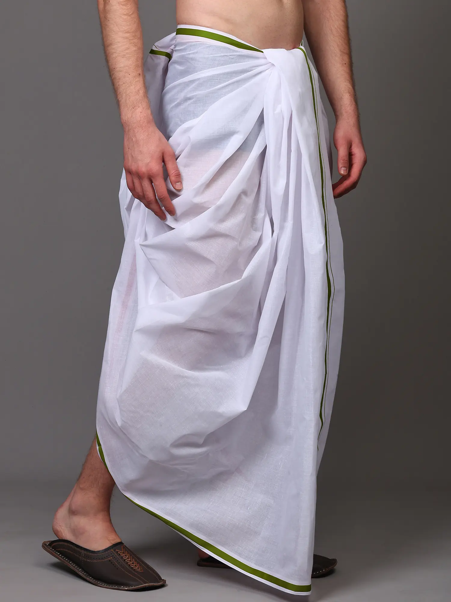 Woven Golden Border Ready to Wear Dhoti and Angavastram Set