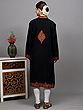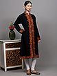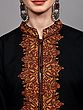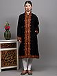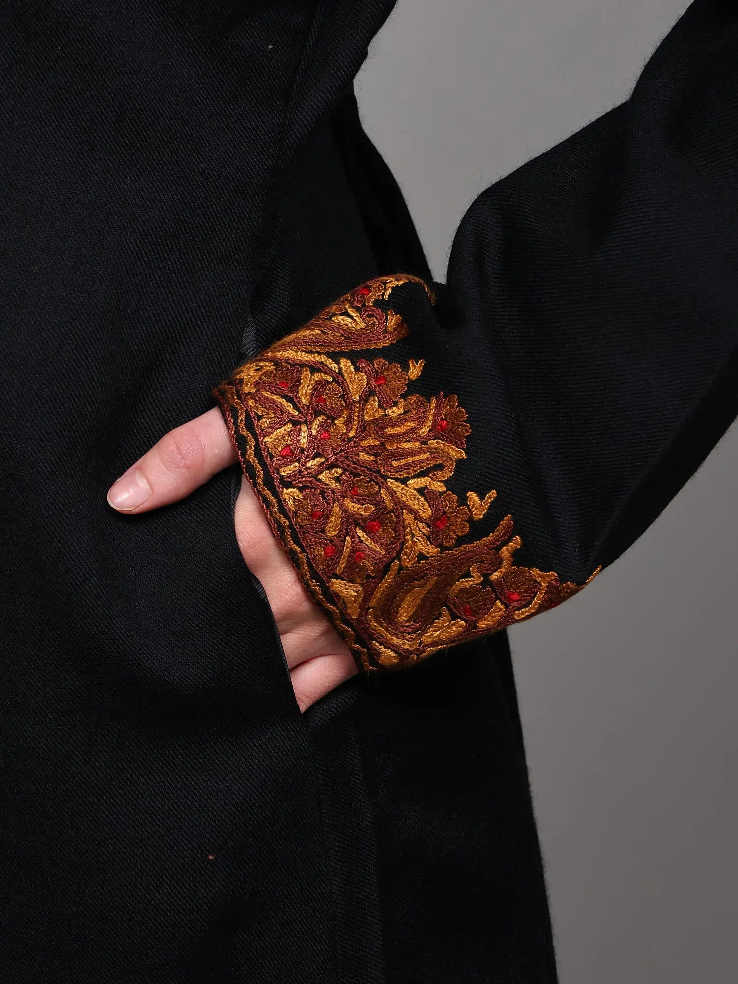 Bristol-Black Pure Silk Long Jacket with Aari Embroidered Flowers All-Over from Kashmir