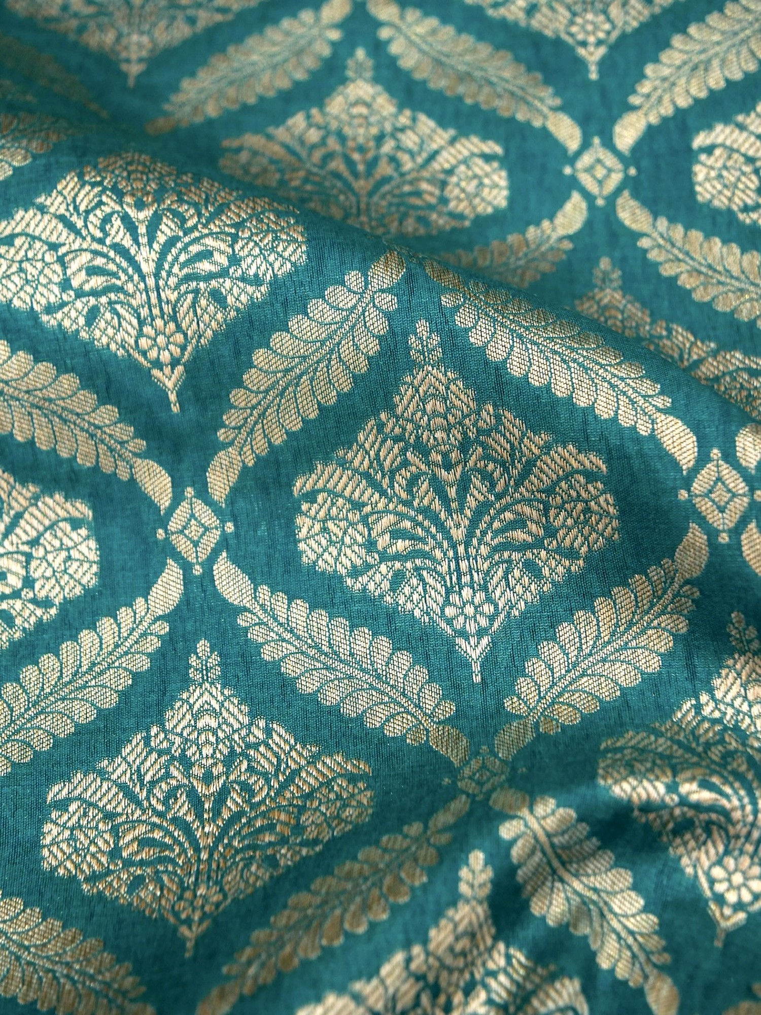 Zari is one of the distinctive features of Banarasis that makes the saree look graceful and beautiful. The selection of Zari is done as per the base color of the saree. Usually, in most sarees, copper zari is used but sometimes real silver and gold zari may also be used.