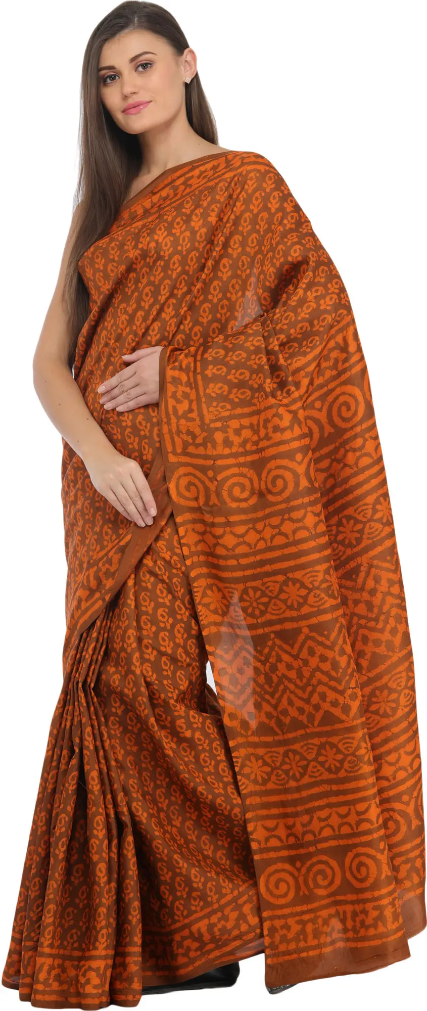Batik-Dyed Tri-Colored Long Elastic Skirt
