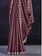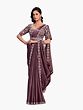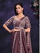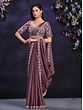 Brown Crepe Satin Silk Embroidered Ready To Wear Saree With Stitched Blouse