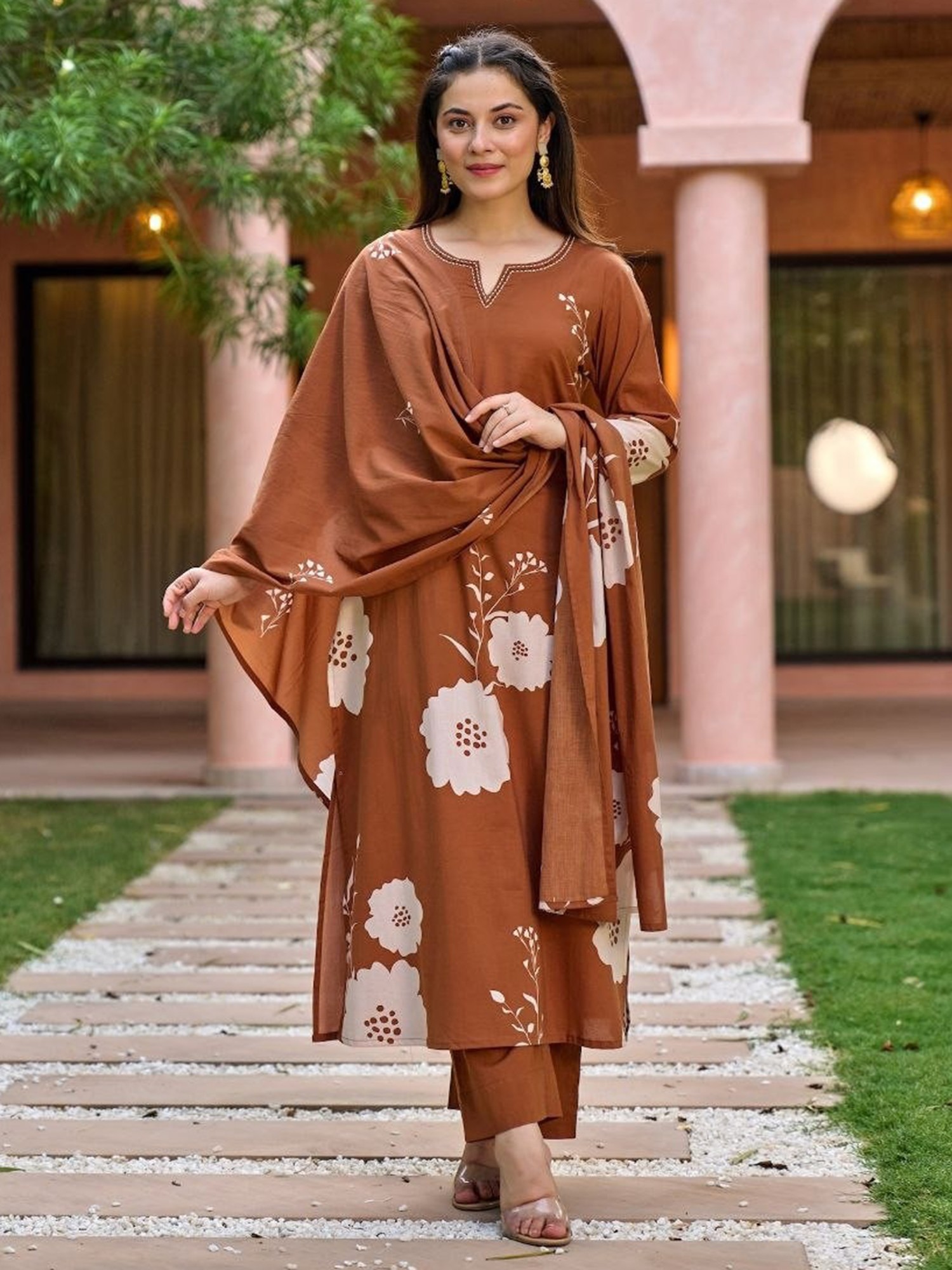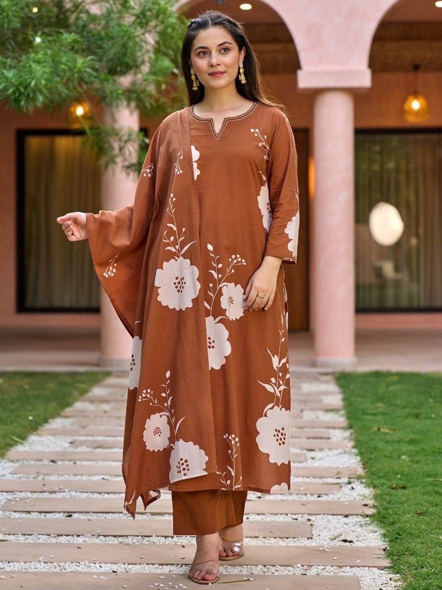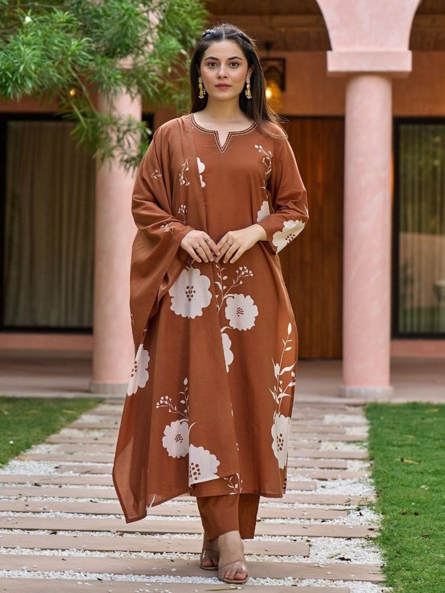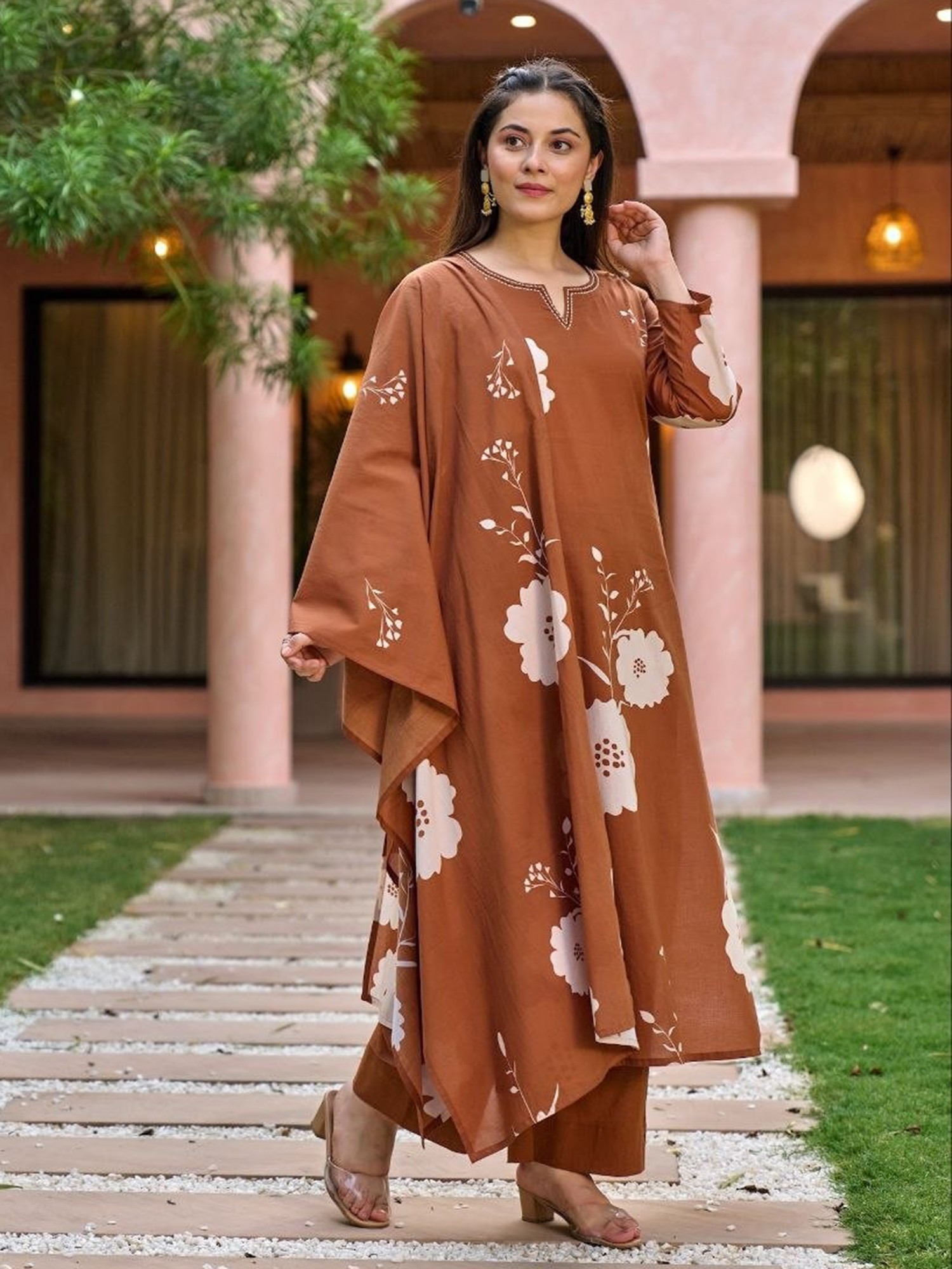 Pure Cotton Printed Kurti Set With Dupatta For Festive Occasion