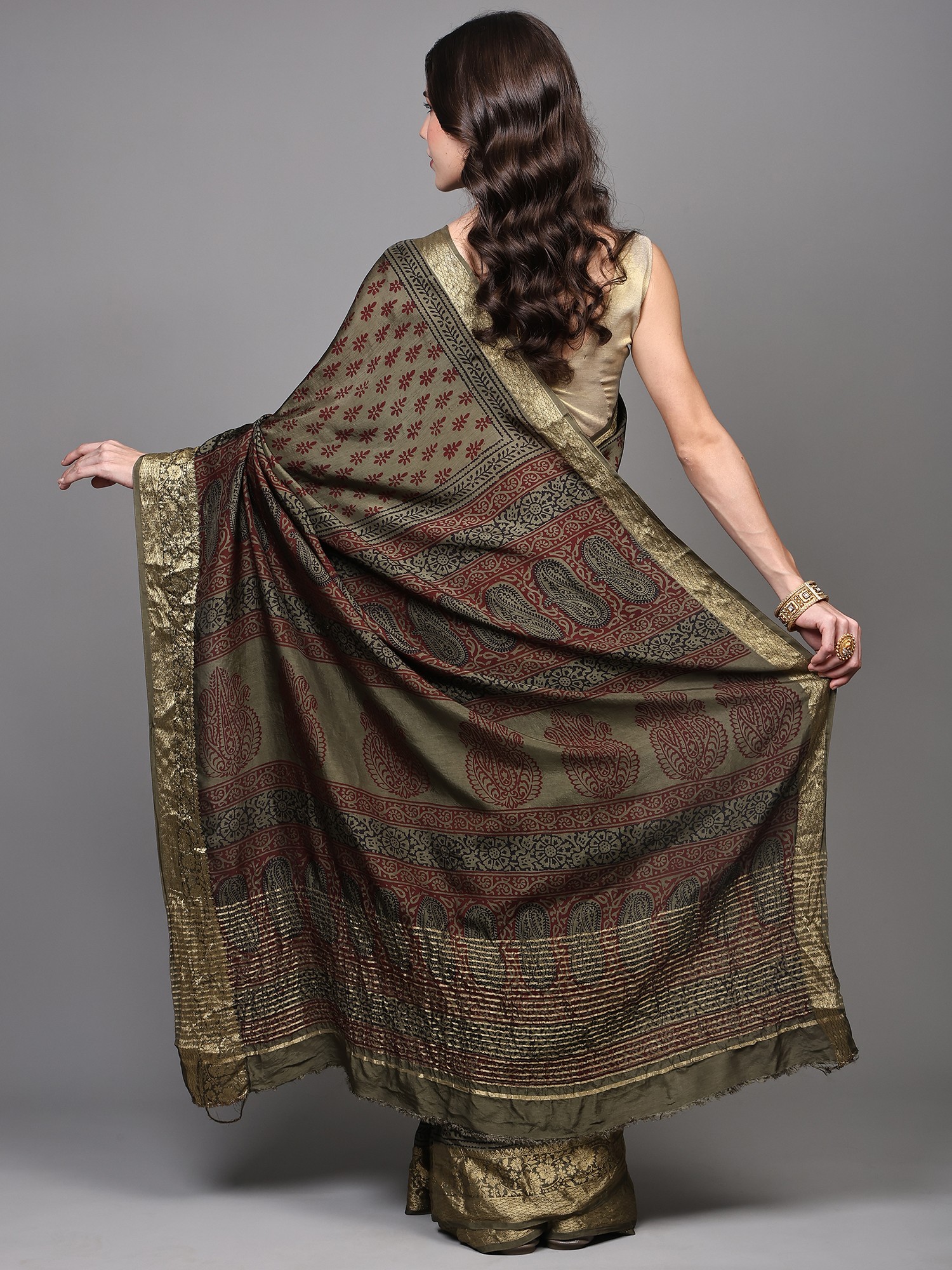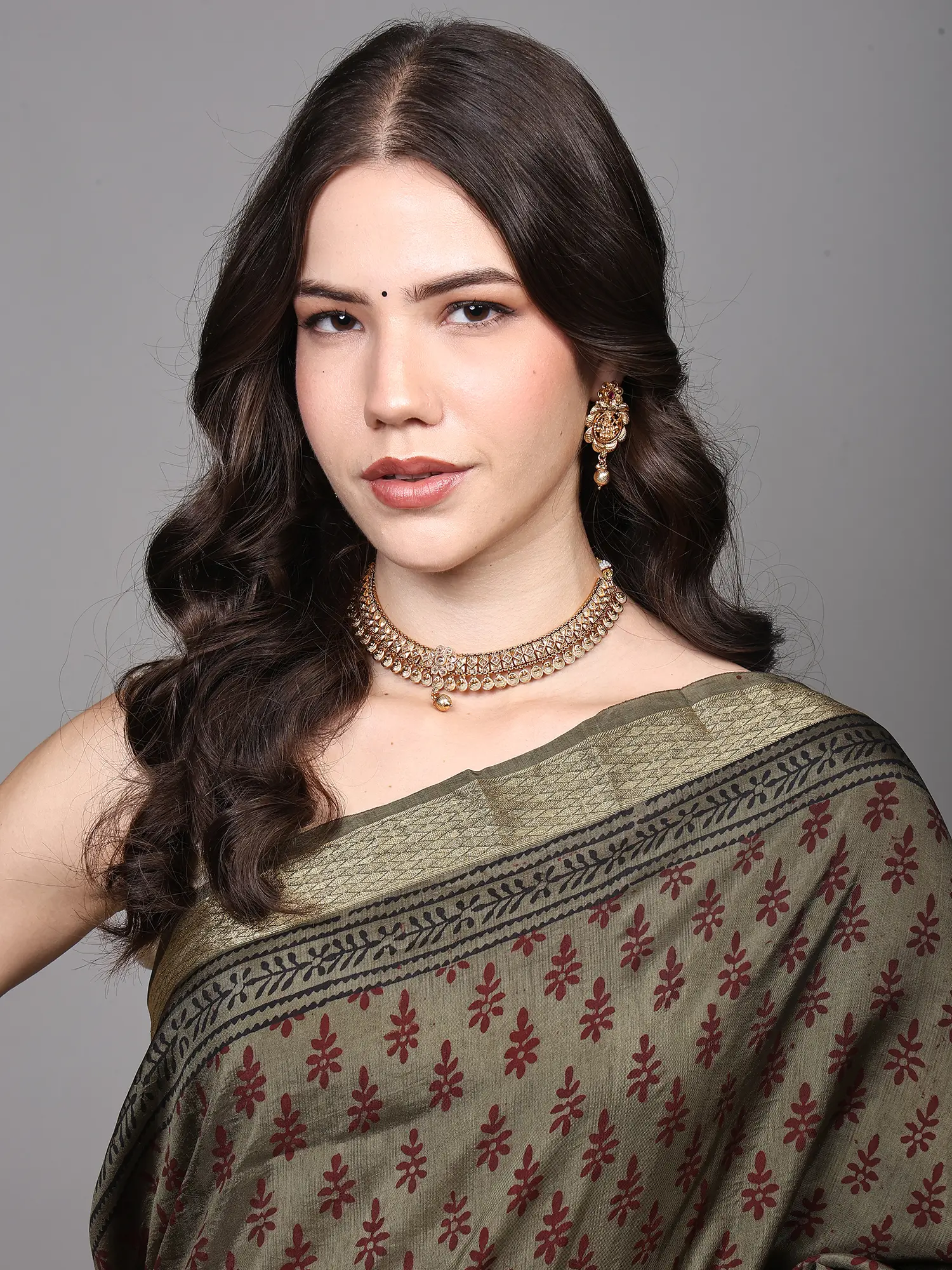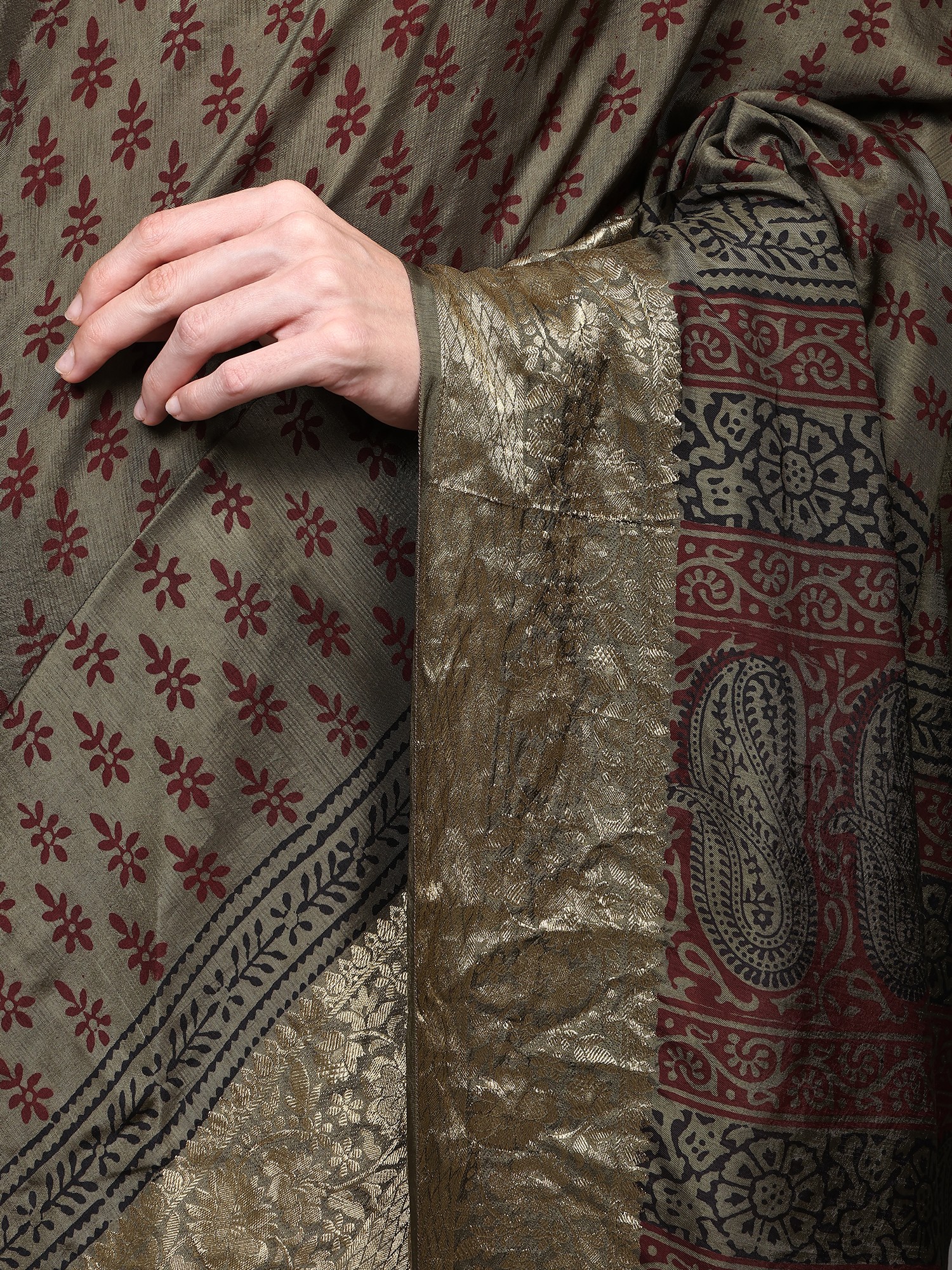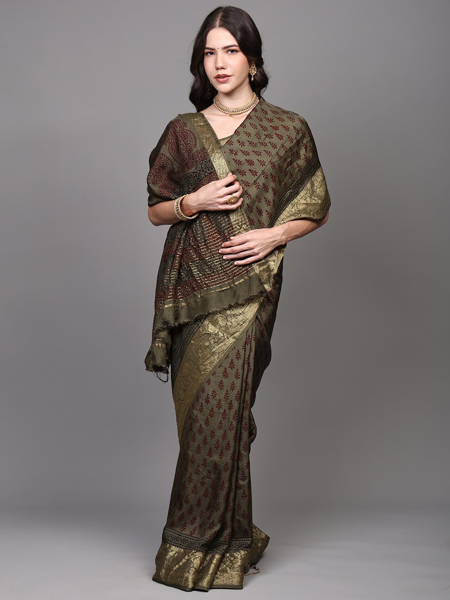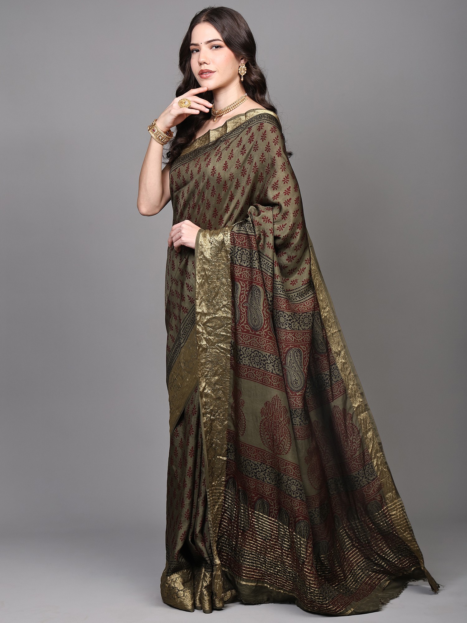 Muslin Dola Silk Elephant And Bird Print Festive Wear Saree With Blouse