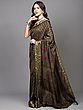 Floral Embroidery And Sequins Work Contrast Border Pure Dola Viscose Silk Saree With Tassels Pallu