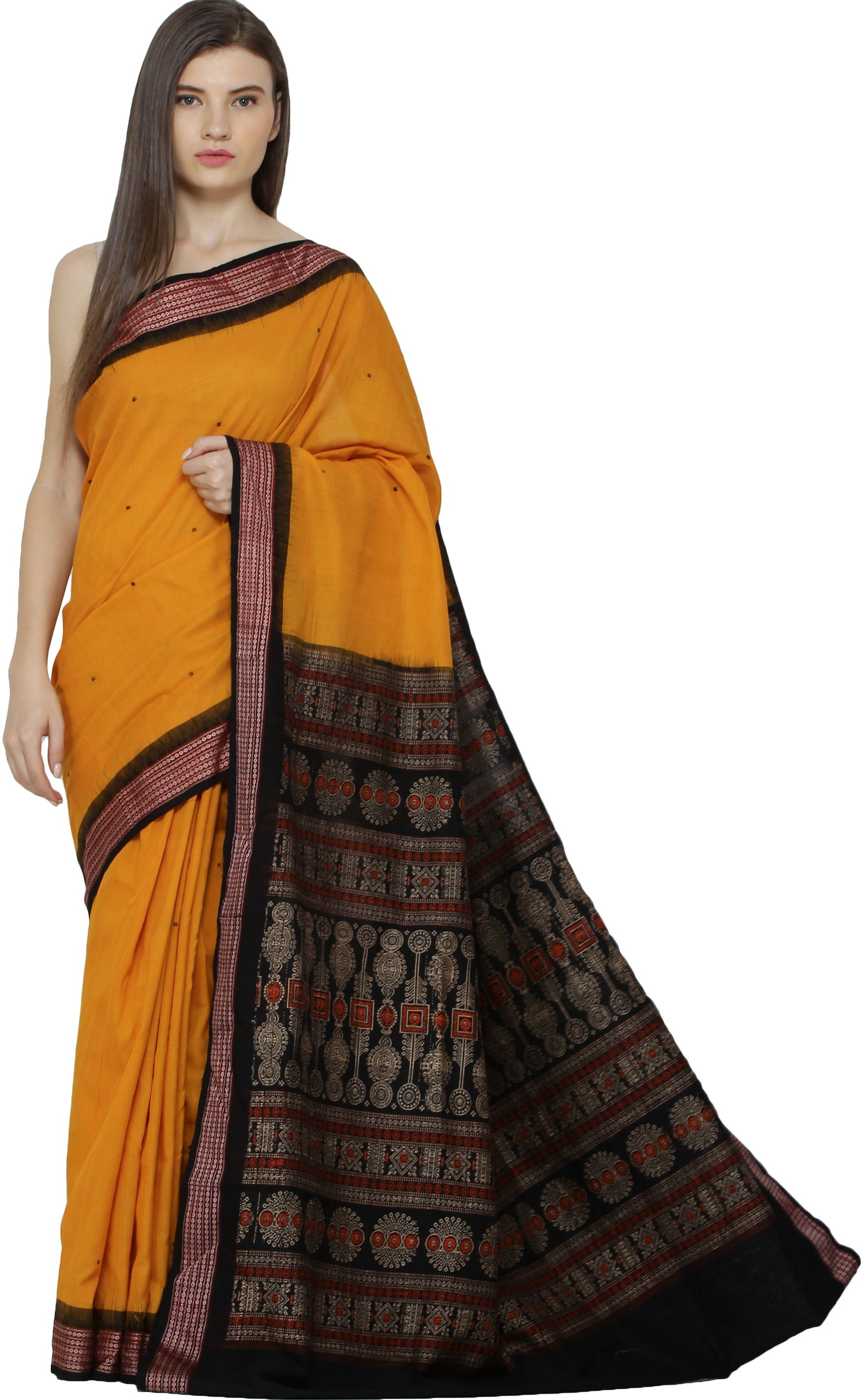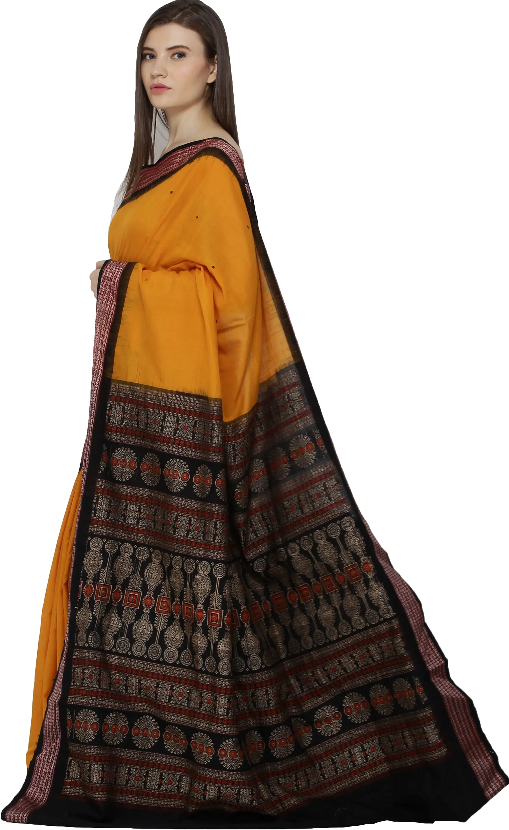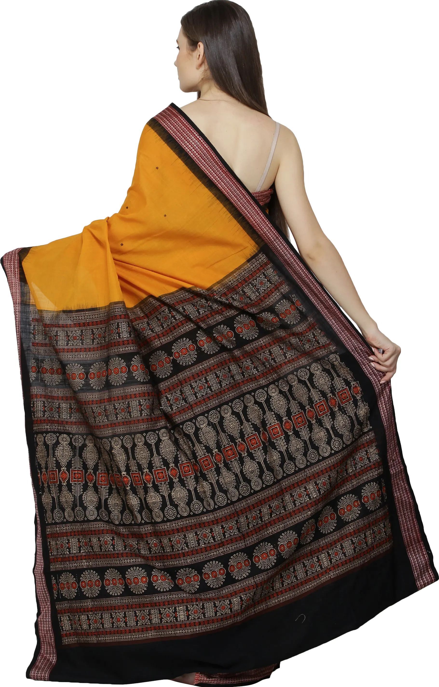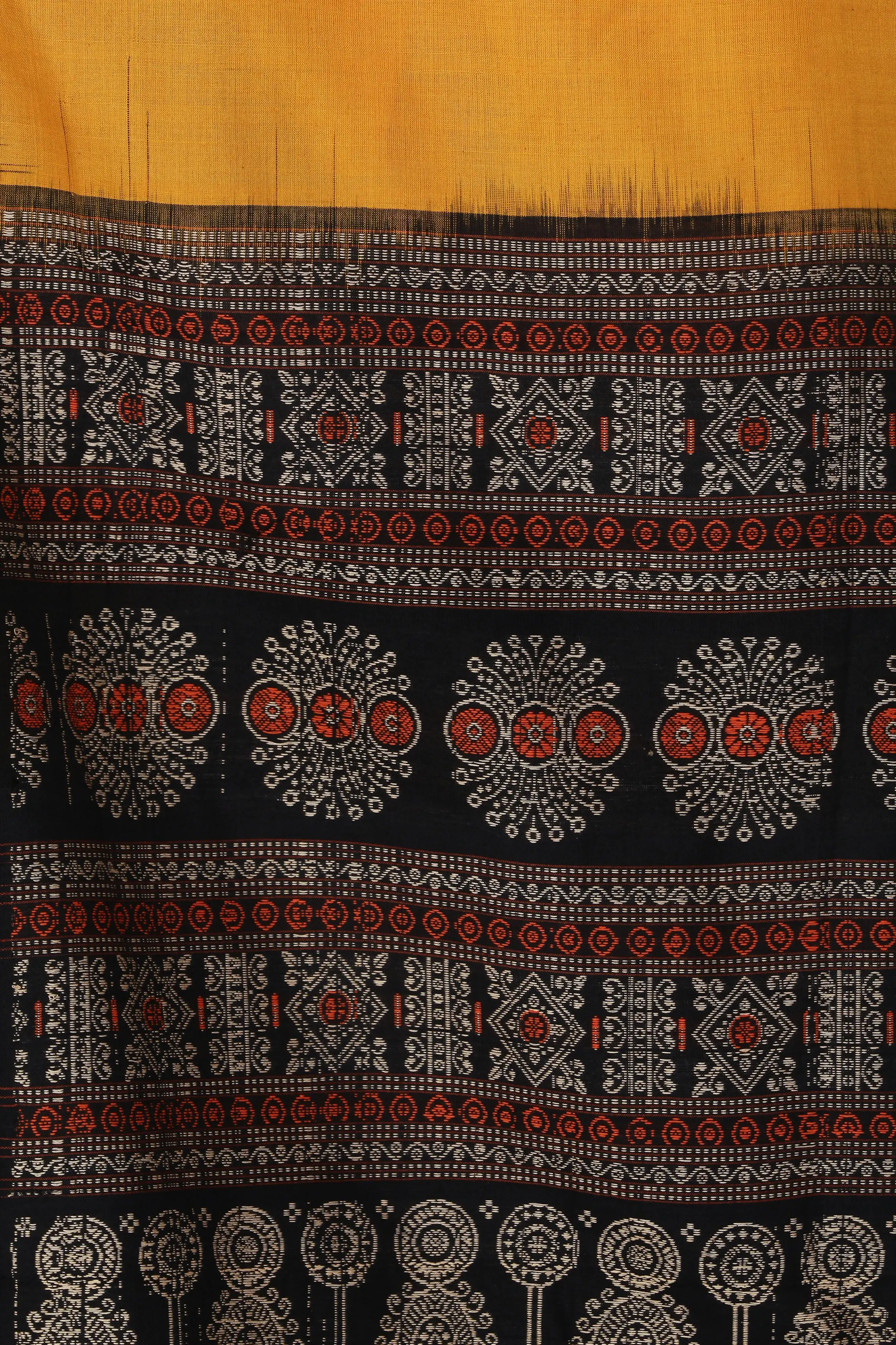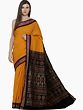 Tribal Motifs Bomkai Saree with Temple Border from Odisha and Contrast Border and Anchal