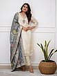 Cannoli-Cream Stone work Satin Long Kaftan with Printed Flowers and Peacock Feather