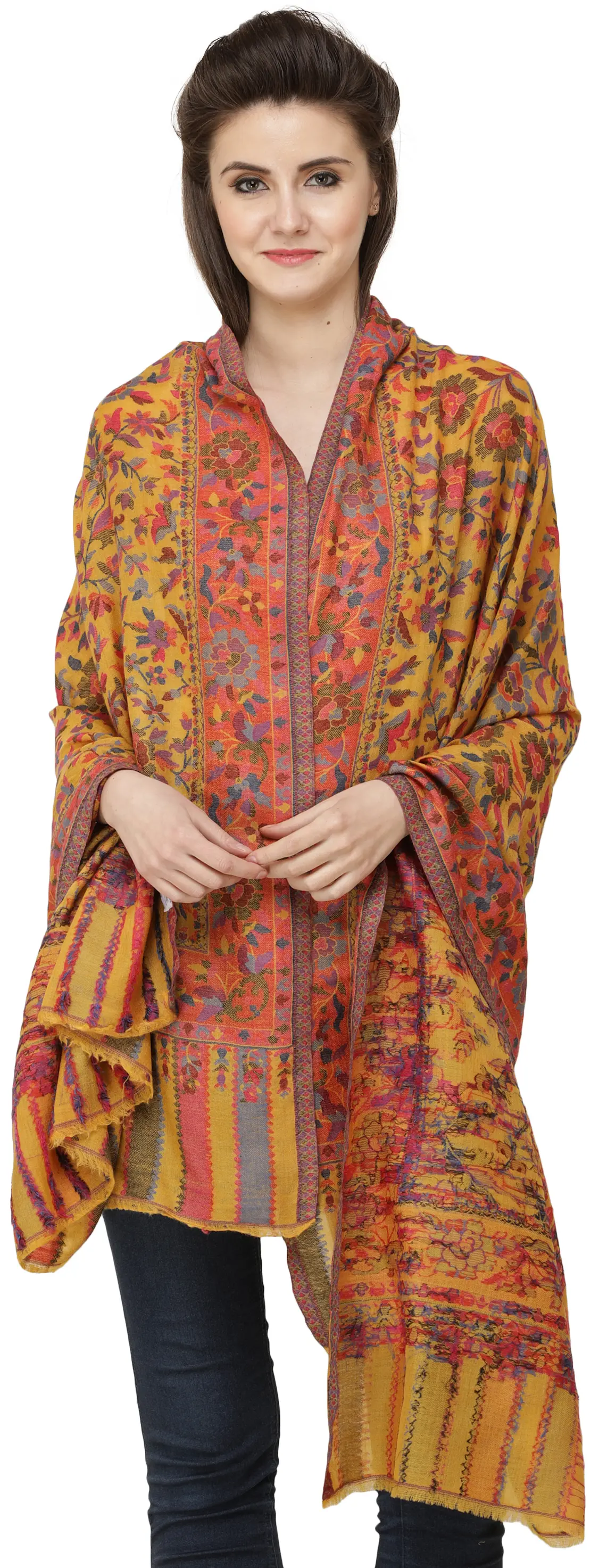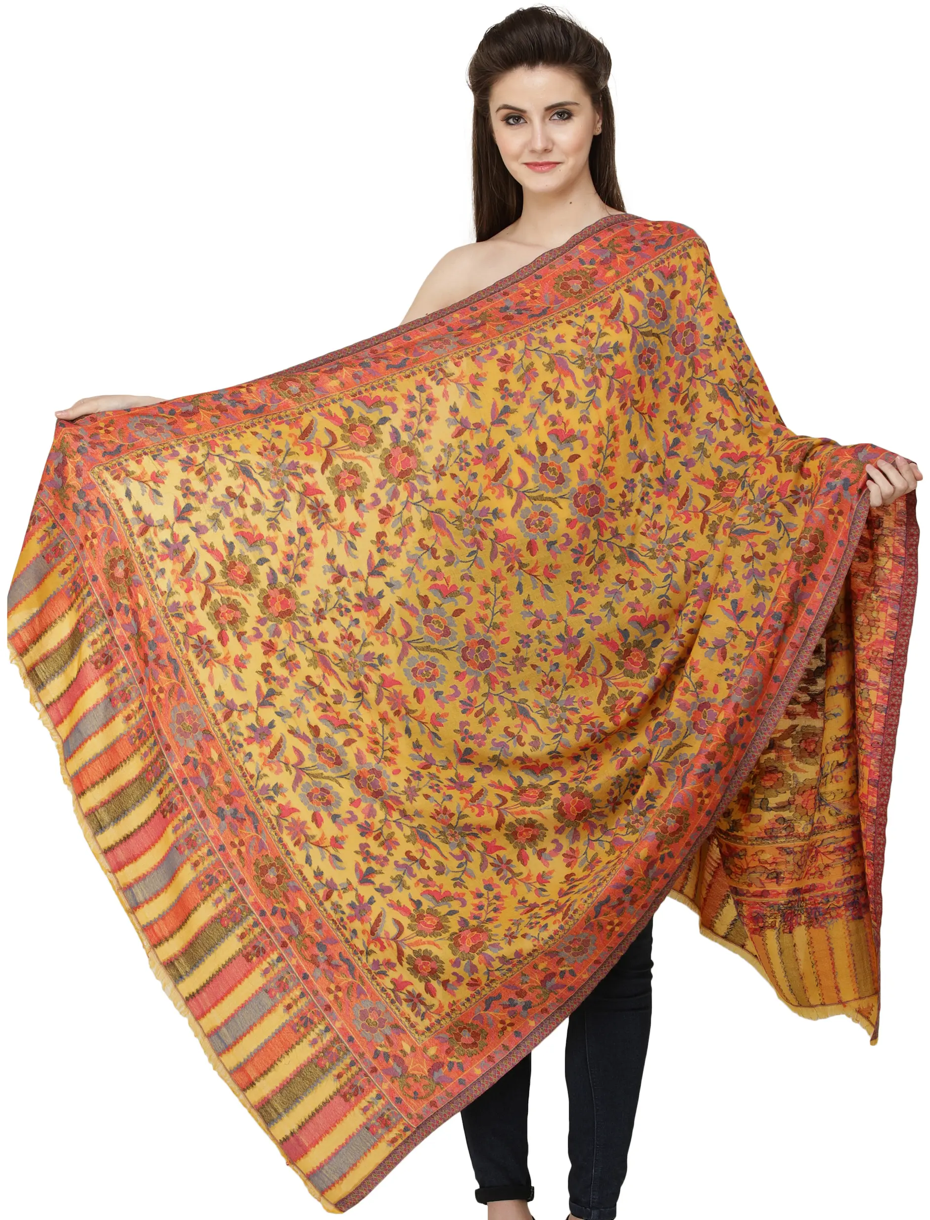 Stole from Amritsar with Aari Embroidered Paisleys All-Over