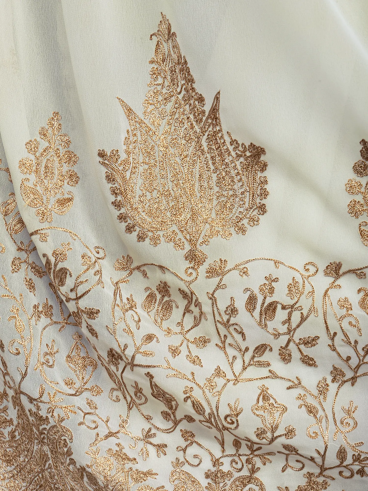Georgette Saree with Aari Embroidered Flowers and Paisleys Jaal from Kashmir