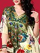 Sea Green Printed Cotton Long Kaftan with Beige V-neck