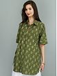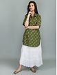 Greeny-Brown Fully Flared Heavy Digital Printed Pure Muslin Anarkali Style Kurti And Bottom With Dupatta