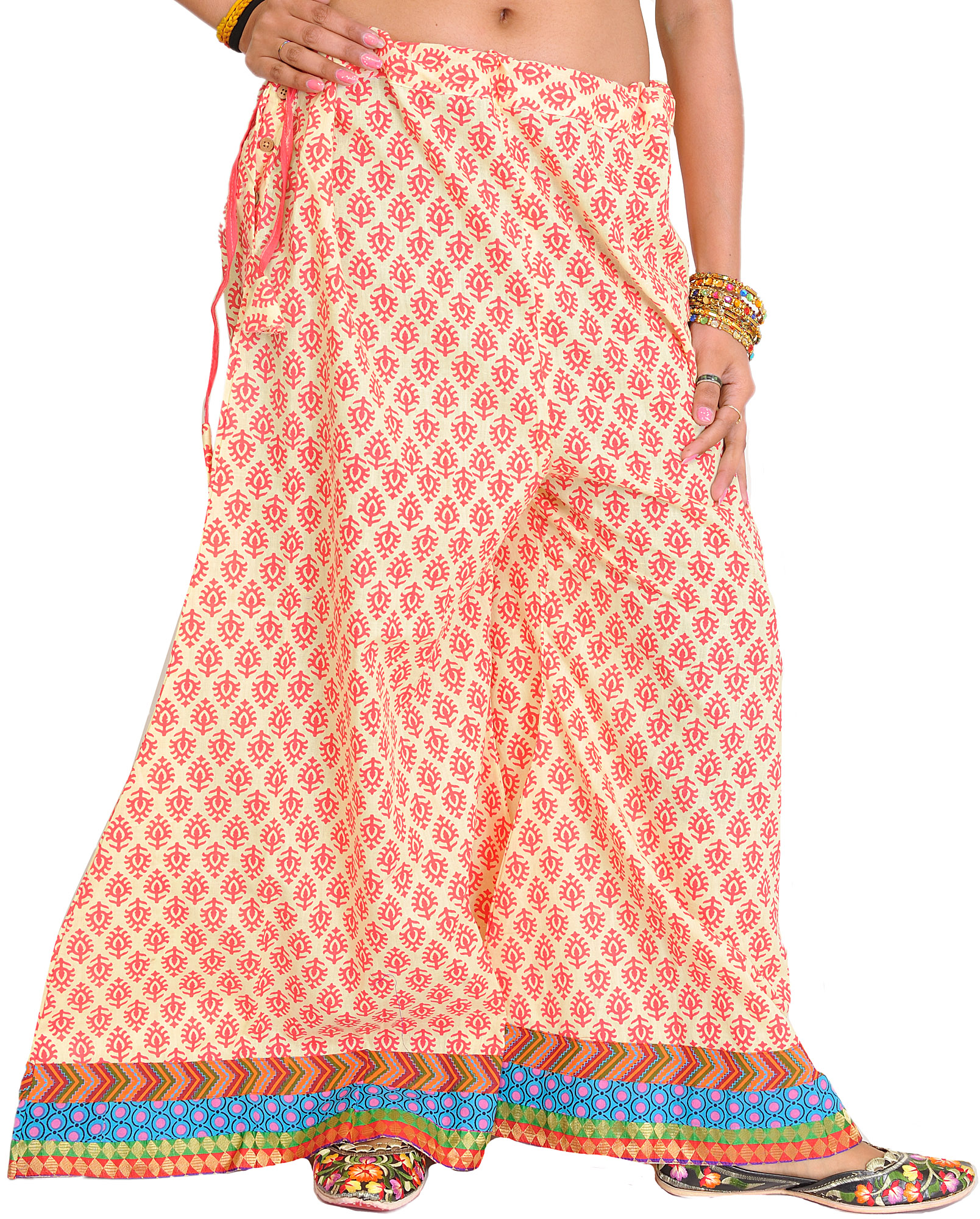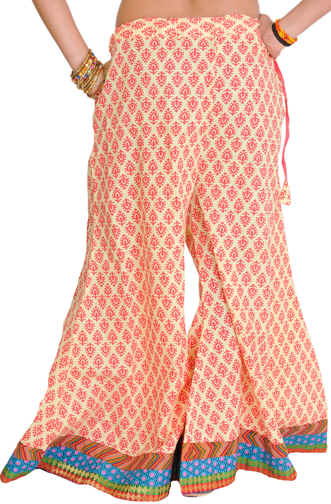 Casual Palazzo Pants from Pilkhuwa with Printed Leaves and Patch Border