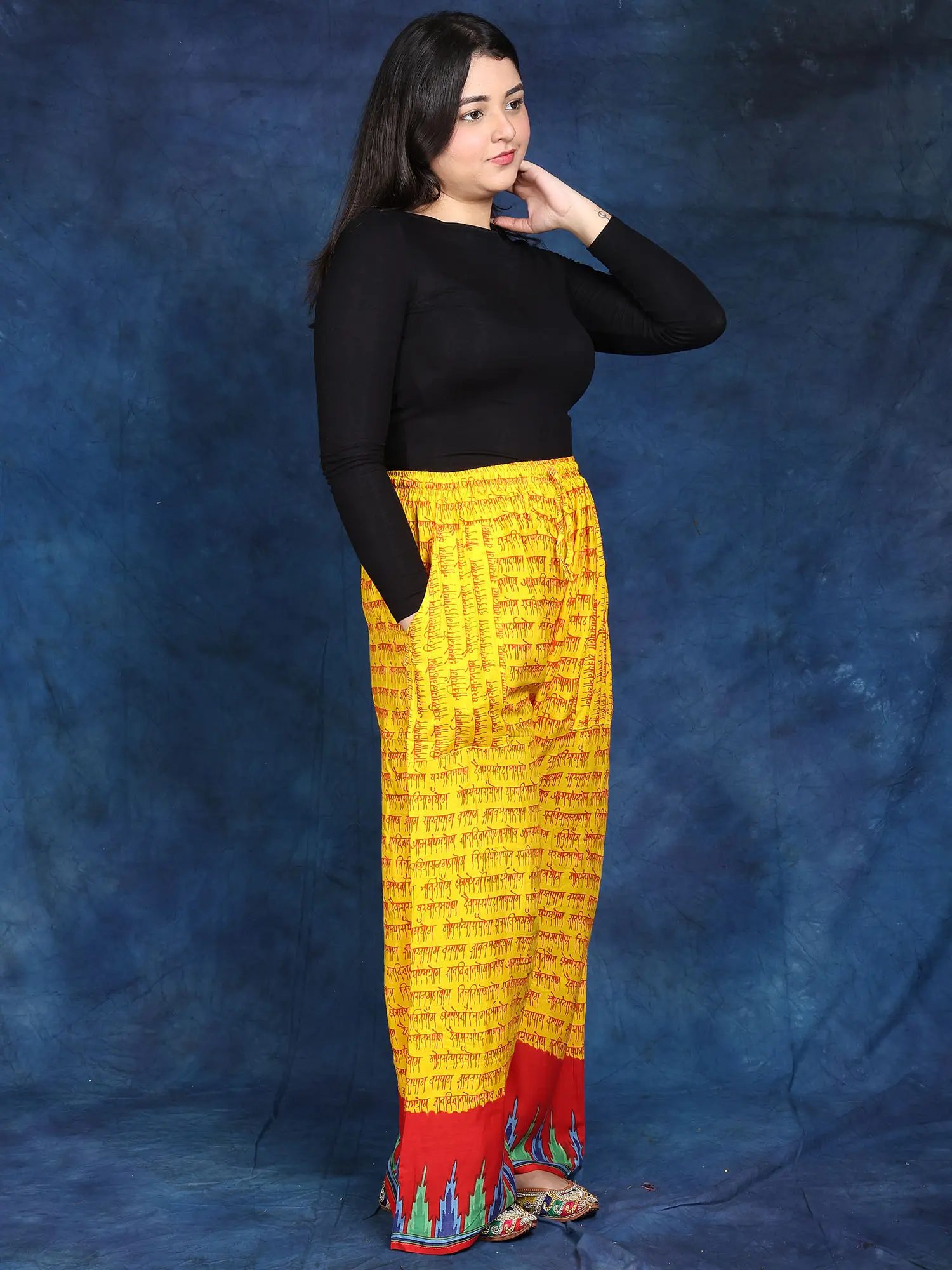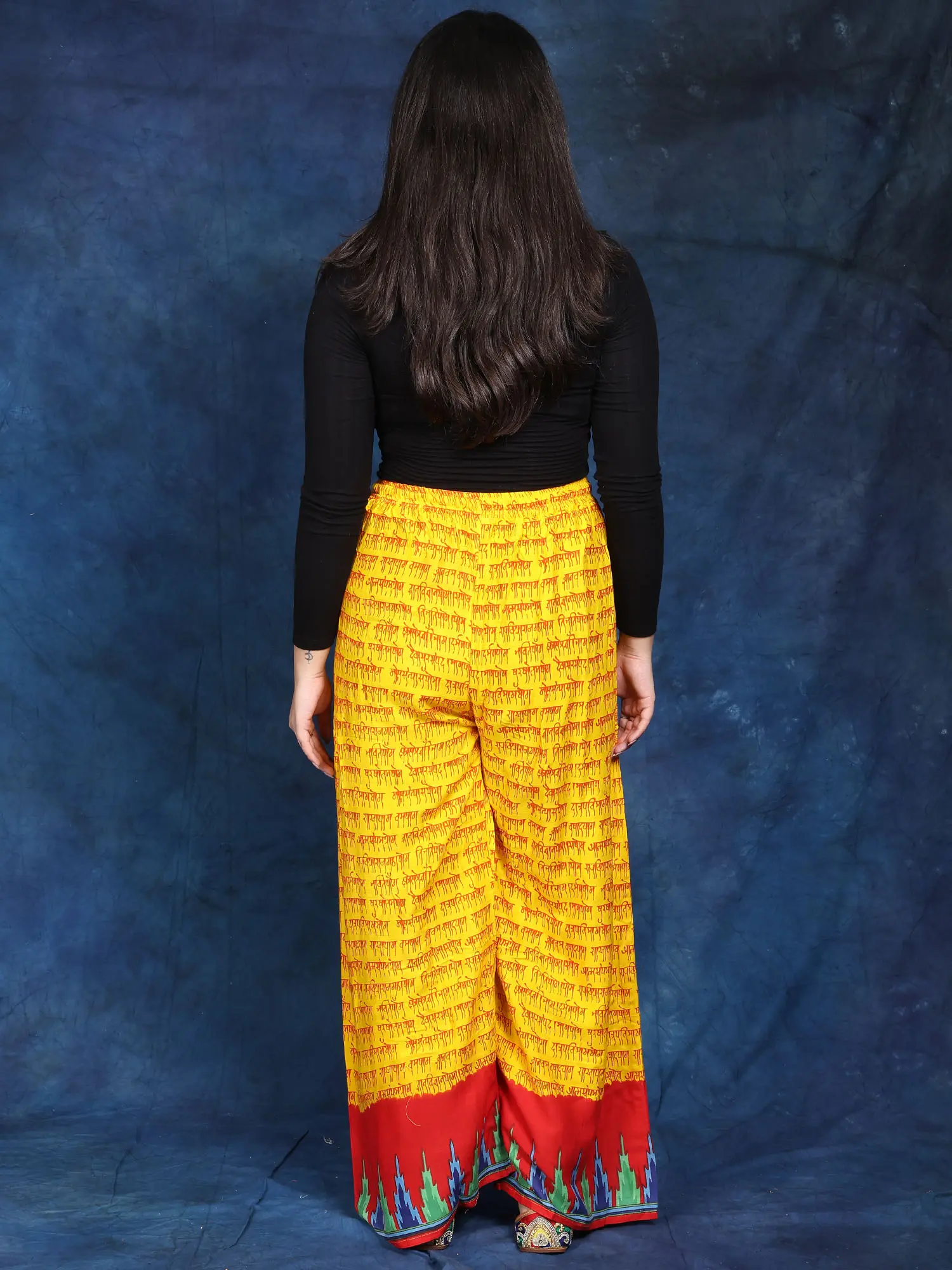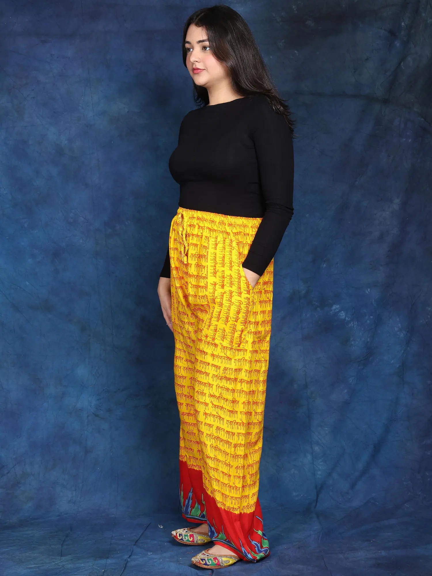 In the rhythmic dance of existence, this “Casual Yoga Trouser” is a conduit of tranquility, imparting ancient wisdom with every stretch. Crafted from Rayon’s delicate embrace, it cascades like a second skin, gracefully accepting movement. Adorned with printed mantras, each fold serves as a tribute to awareness, leading an individual through the maze of inner serenity.