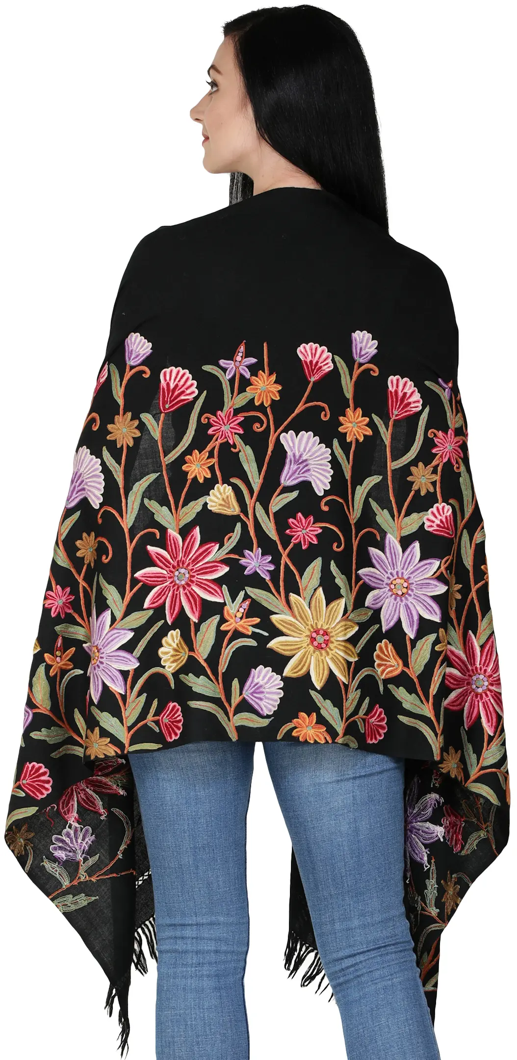 Kashmiri Stole with Crewel Embroidered Booties by Hand