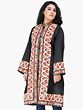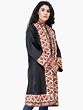 Black-Onyx Pure Wool Long Jacket from Kashmir with Aari Embroidery by Hand