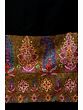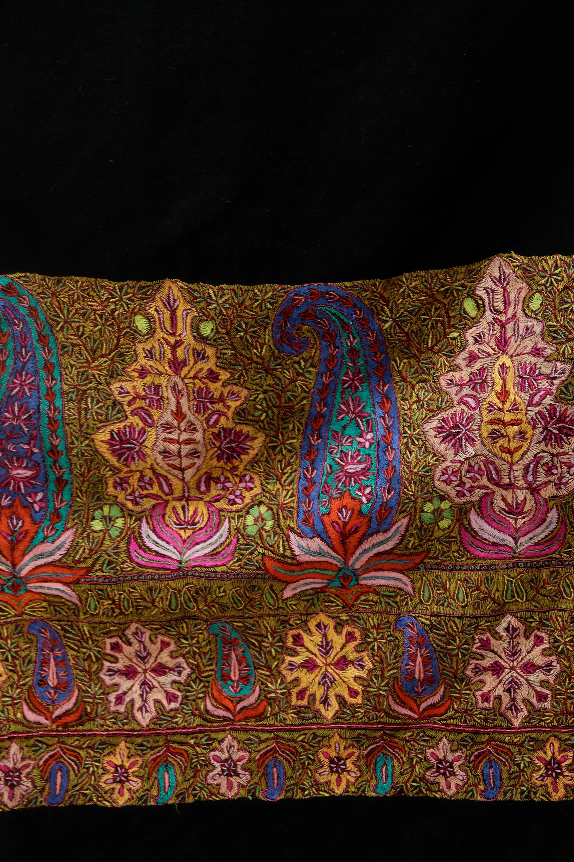 Black-Sand Wool Shawl with Sozni Embroidered Flowers and Paisleys