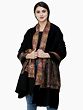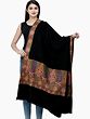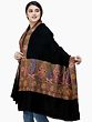 Black-Onyx Pure Wool Kashmiri Stole with Paisley and Flower Aari Hand Embroidery