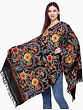 Black Stole from Kashmir with Dense Aari-Hand Embroidered Paisleys