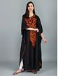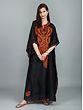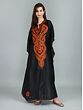 Black-Beauty Pure Silk Short Kaftan from Kashmir with Hand-Woven Aari Embroidered Flowers