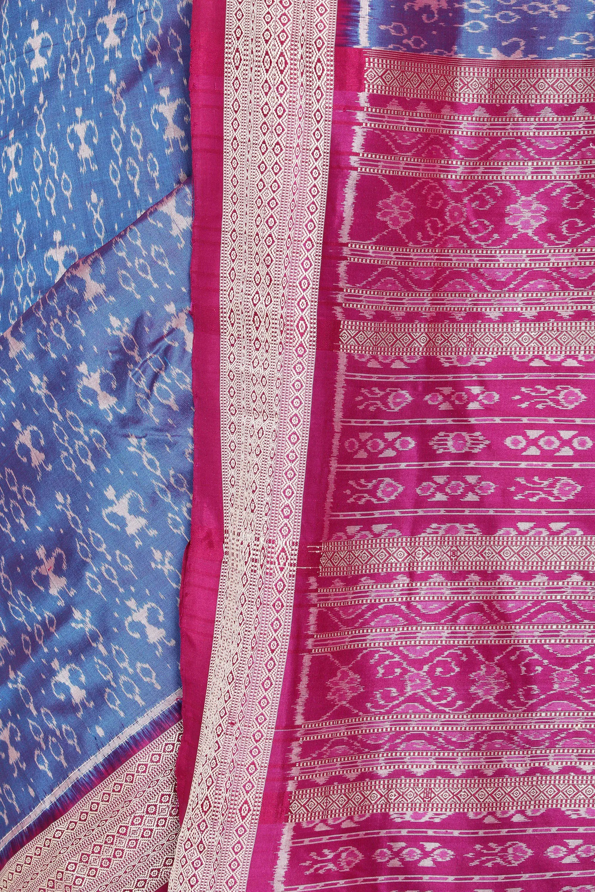 Pirate-Black Pure Silk Ikat Handloom Sambhalpuri Saree with Animals-Birds Motifs and Woven Fish Border