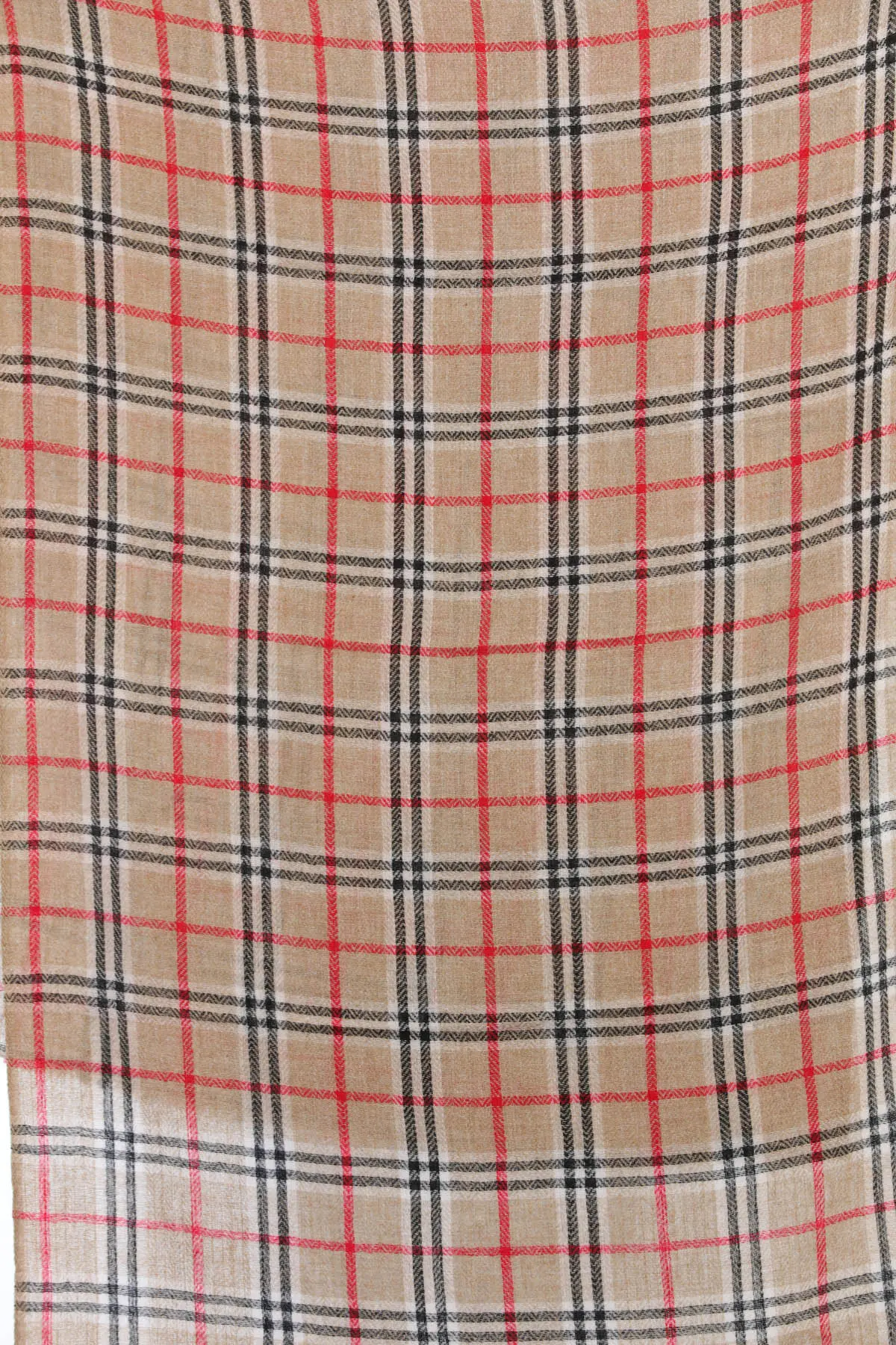 The pure wool composition ensures unparalleled softness and warmth, making this stole a delight to wear. Its generous size allows for a multitude of styling possibilities. Drape it gracefully over your shoulders for an elegant evening look, or wrap it around your neck for cozy warmth on a crisp day. The intricate woven checks, featuring classic black and vibrant red accents against the subtle beige background, add visual interest and a touch of heritage-inspired flair. Whether paired with tailored outerwear, a simple knit, or even a formal dress, this stole promises to imbue your style with a sense of understated opulence and impeccable taste.