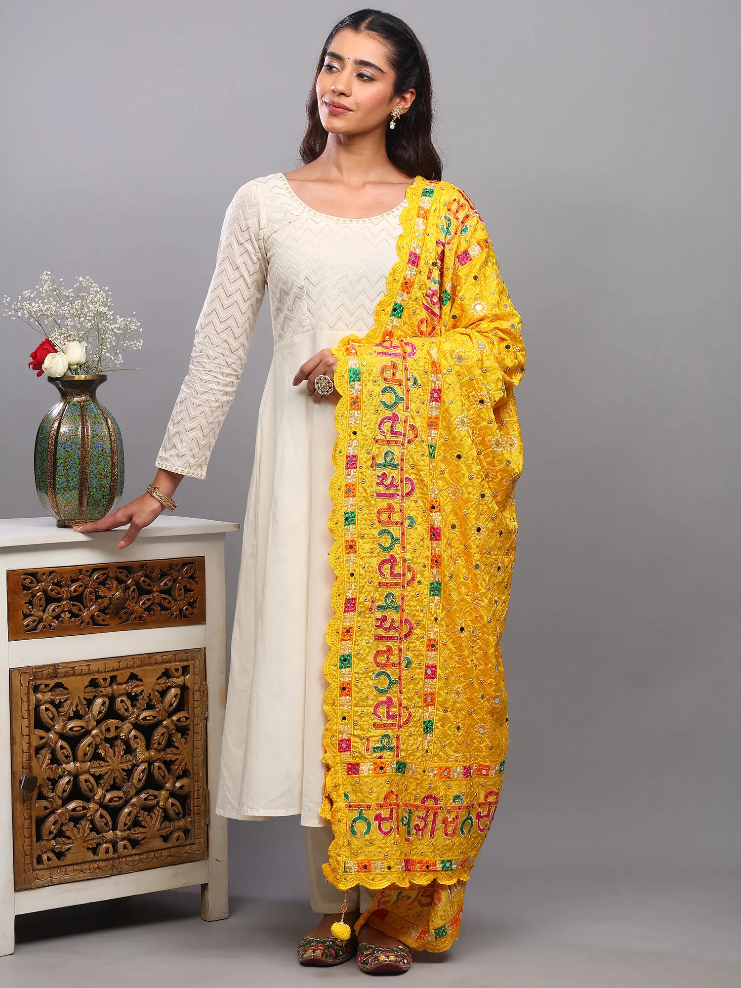Phulkari Dupatta from Punjab with Embroidery and Gota Border