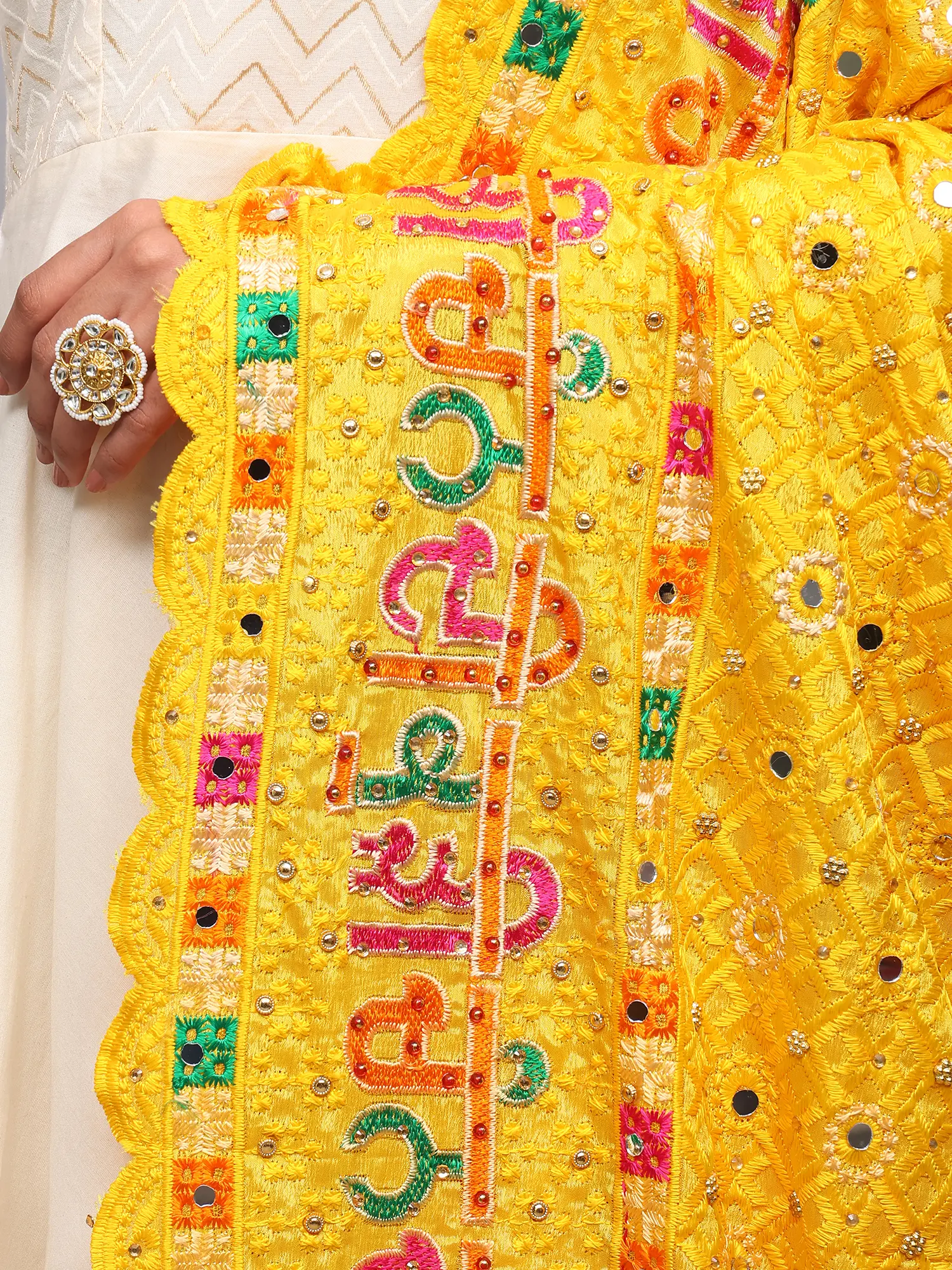 Multicolor Embroidered Phulkari Dupatta from Punjab with Mirrors and Beaded Zari Border