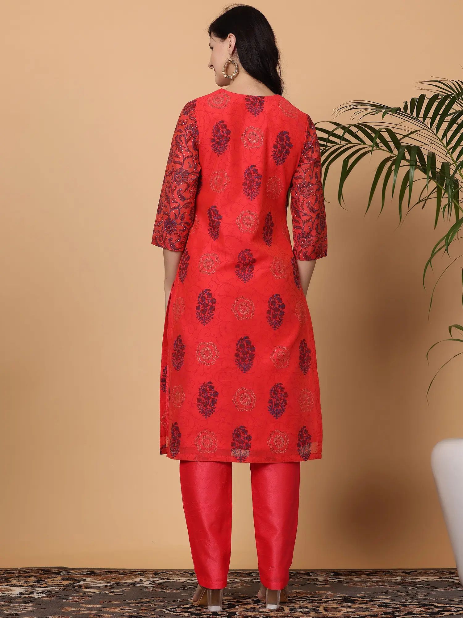Designer Women Embroidered A Line Silk Kurta Set With Matching Pants For Festive Occasions