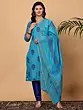 No ethnic ensemble is complete without a beautifully coordinated dupatta, and this set does not disappoint. The accompanying dupatta continues the theme of elegance with its own unique design elements. It features a border adorned with a continuation of the floral block print, framed by graceful stripes in alternating shades of blue and subtle golden threads. This intricate detailing on the dupatta adds depth and dimension, completing the outfit with an air of regal charm. The lightweight nature of the fabric ensures it drapes beautifully, adding a final flourish of style and sophistication. This Chanderi kurta set is more than just an outfit; it's a statement of grace and tradition, perfect for making memorable moments even more special.