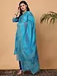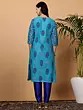 Royal Blue Festive Wear Embroidered A Line Silk Kurta Set With Straight Pants For Women