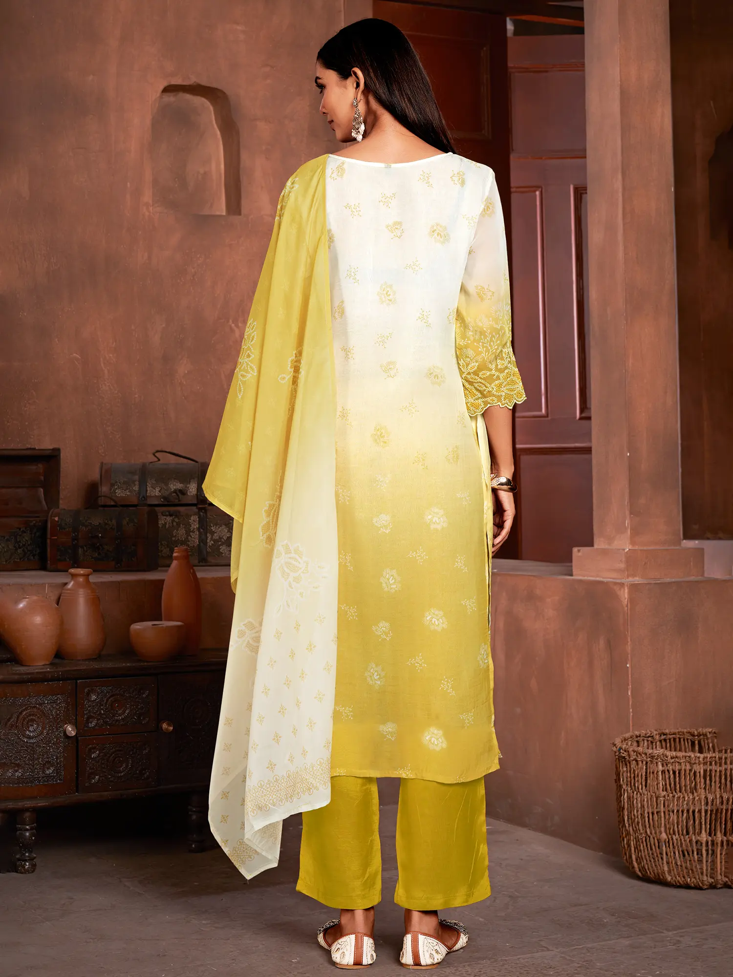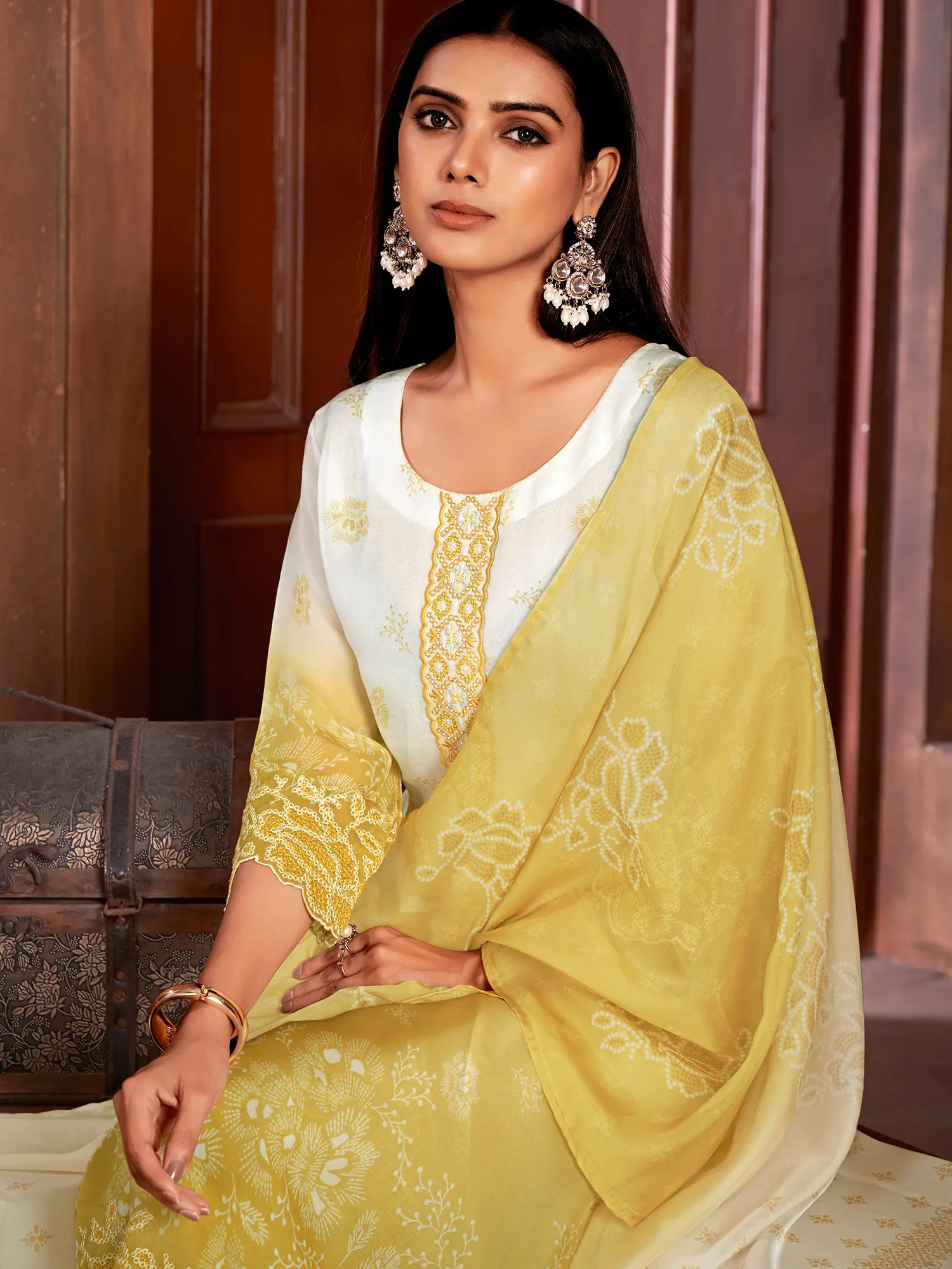 Bring a touch of traditional style to your everyday routine with this digitally printed organza salwar suit.