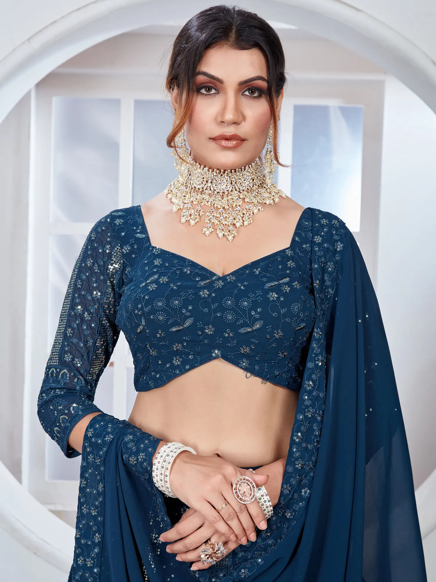 Traditional Lehenga Crafted With Artistic Thread And Sequin Embroidery On Smooth Faux Georgette Fabric
