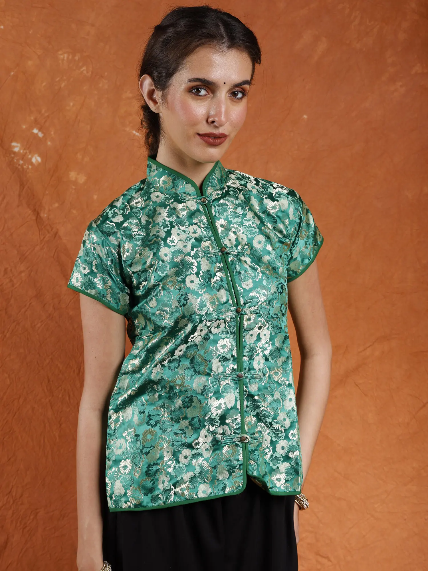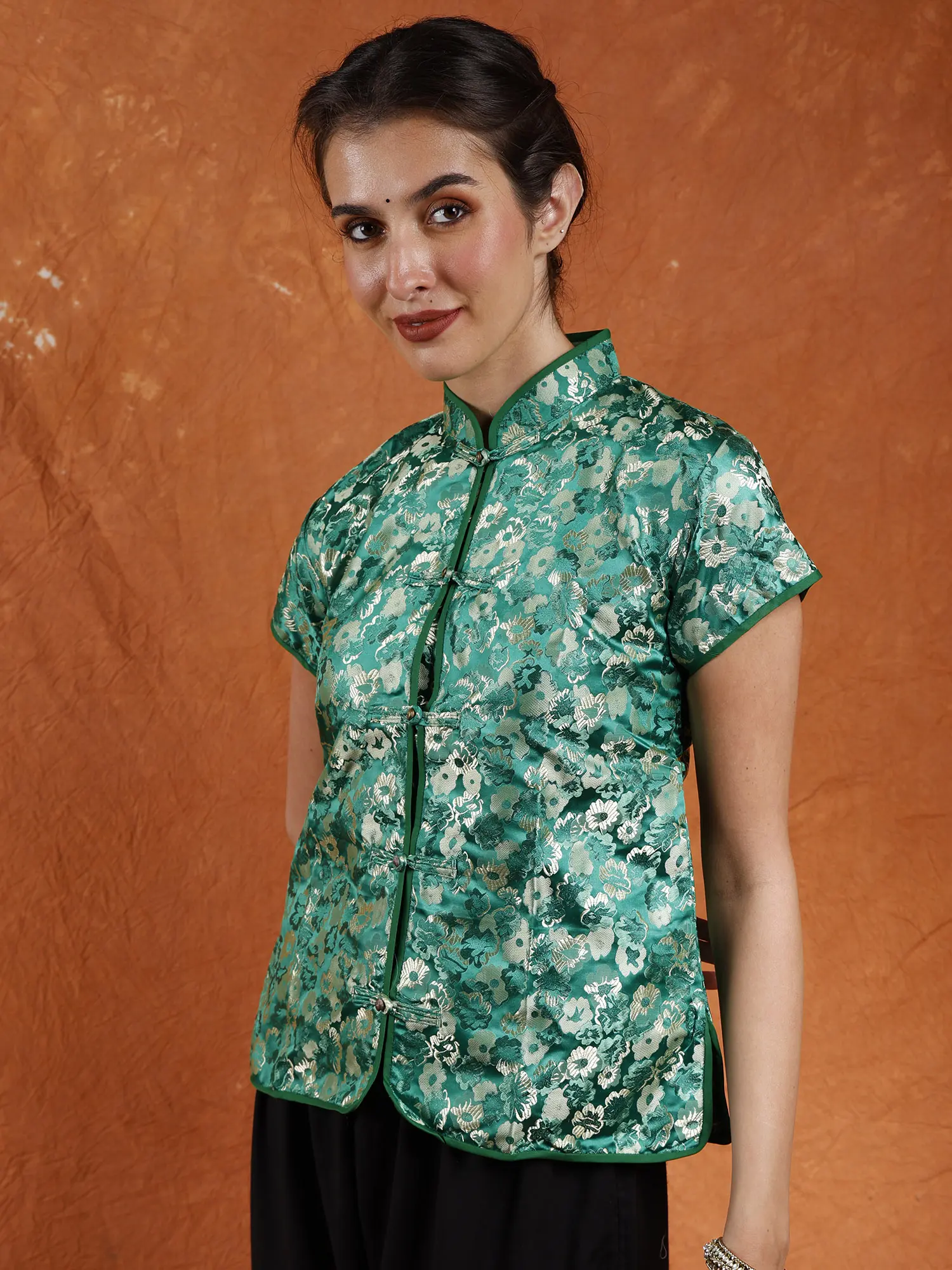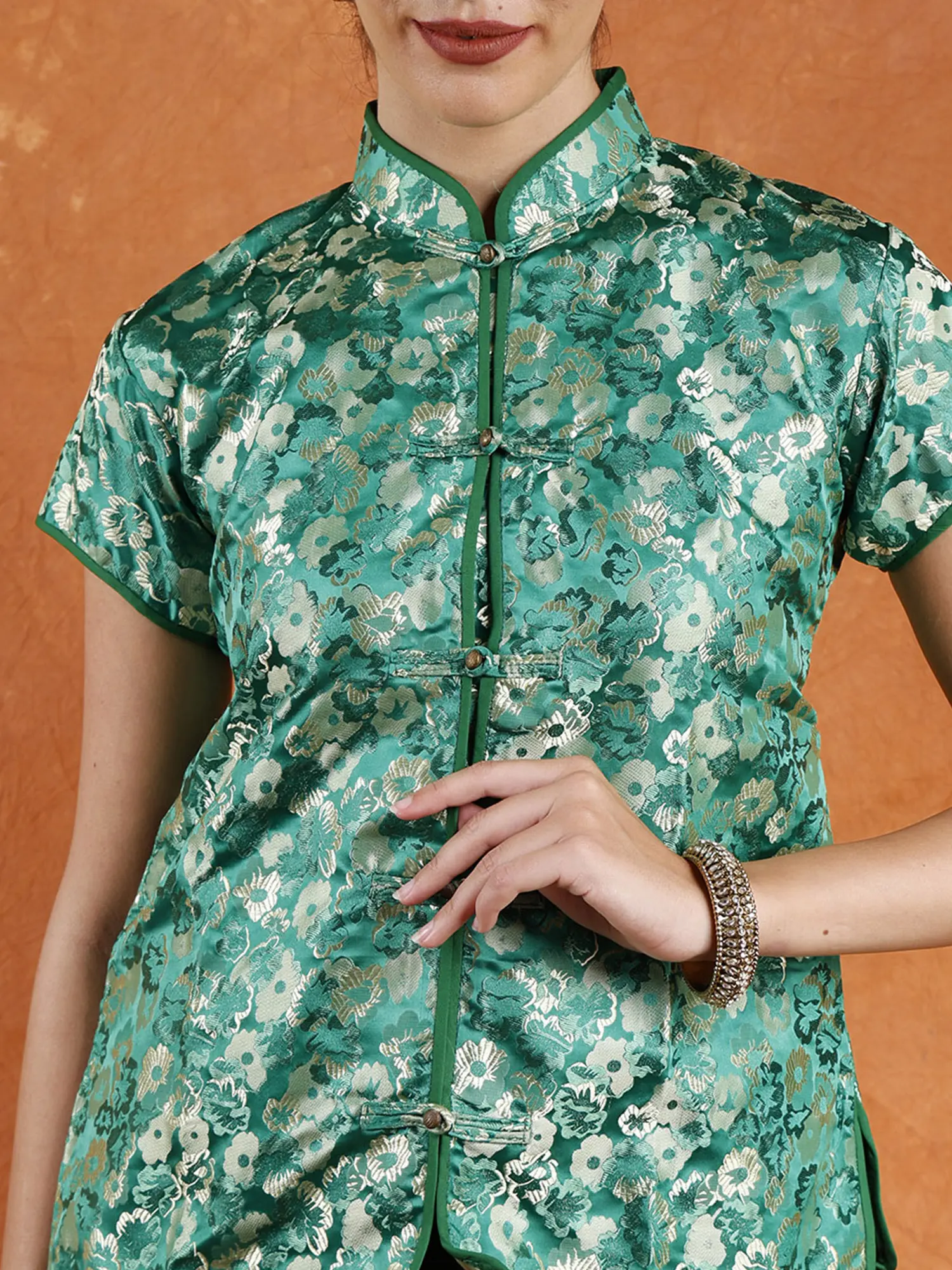Its adaptability enables you to make a dramatic statement or add a bit of ethnic flare to your look. With this very alluring and beautifully designed Cheongsam Jacket, you may embrace the spirit of Sikkim and exude confidence.