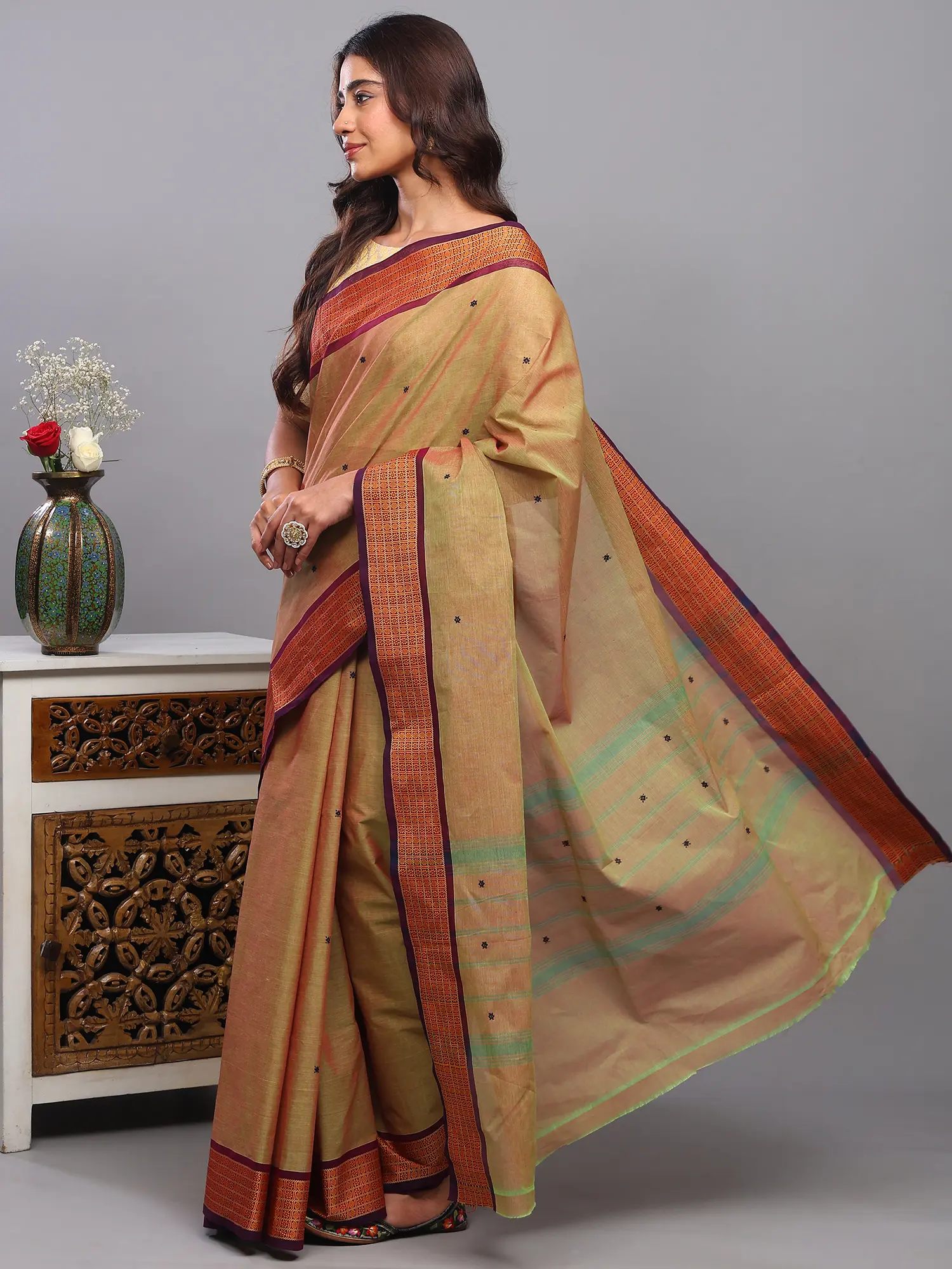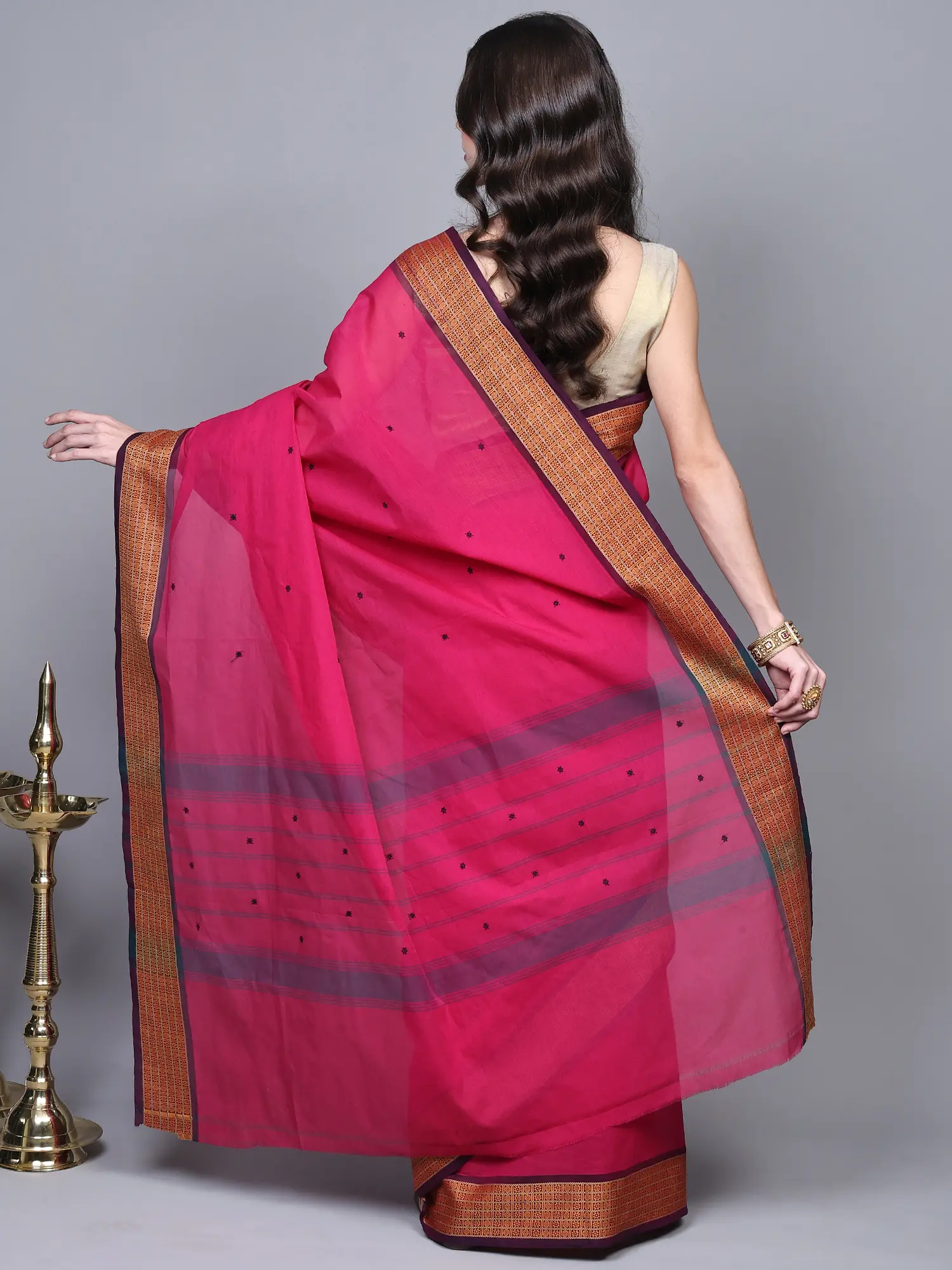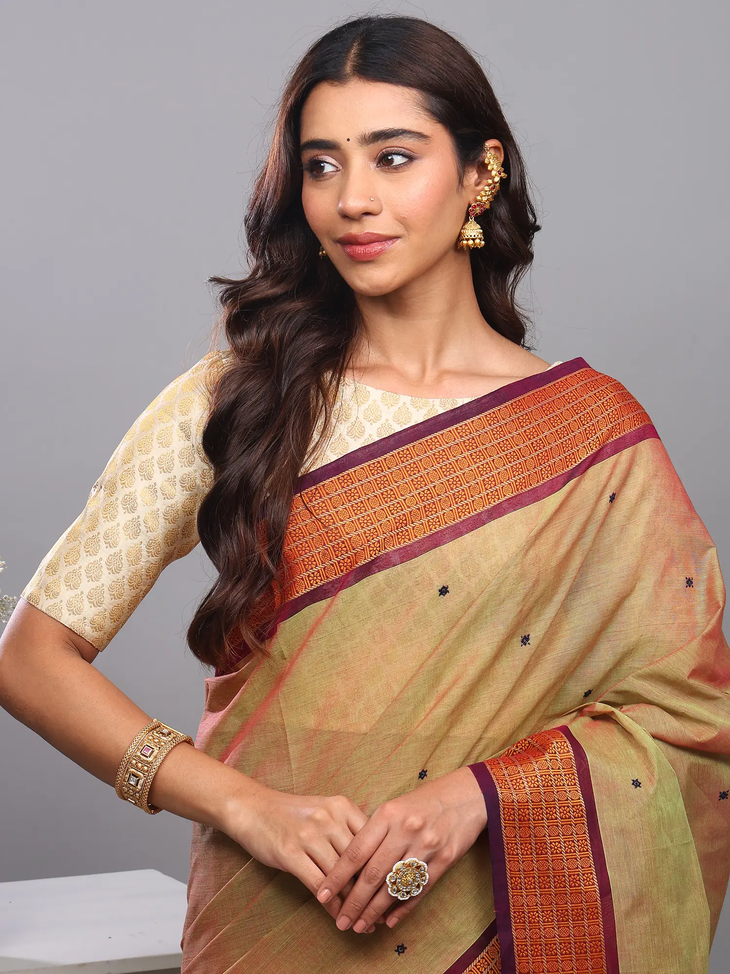 Chettinad Cotton Saree with Woven Buttis and Rudraksha Border from Kumbakonam