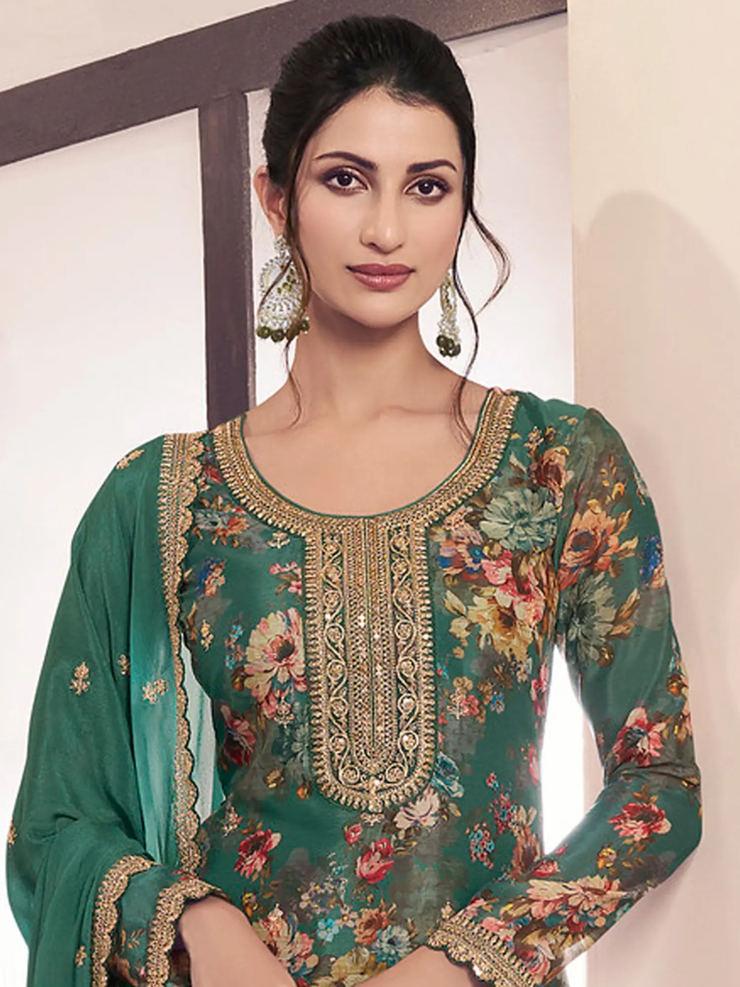 Graceful Chinon Salwar Suit Heavy Thread Embroidery With Organza Dupatta Party Wear Wedding Festive Wear Ethnic Outfit