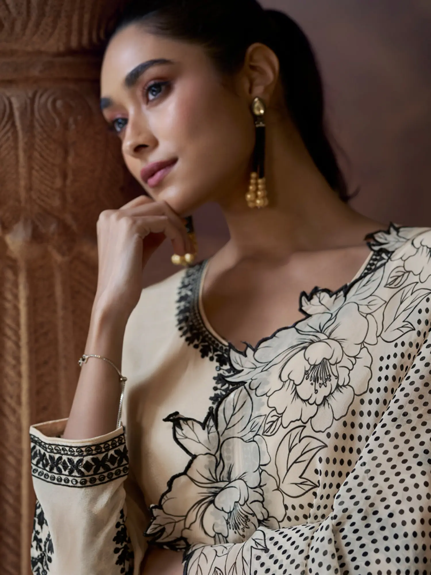 Pure Muslin Salwar Suit with Rose-Bud Digital Print & Daman Embroidery Lace