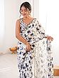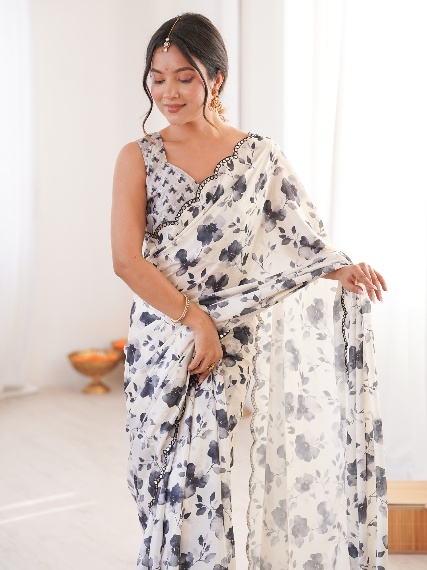 Chinon Saree With Elegant Floral Print And Mirror Cut Work Perfect For Party And Festive Occasions Traditional Stylish Saree For Women