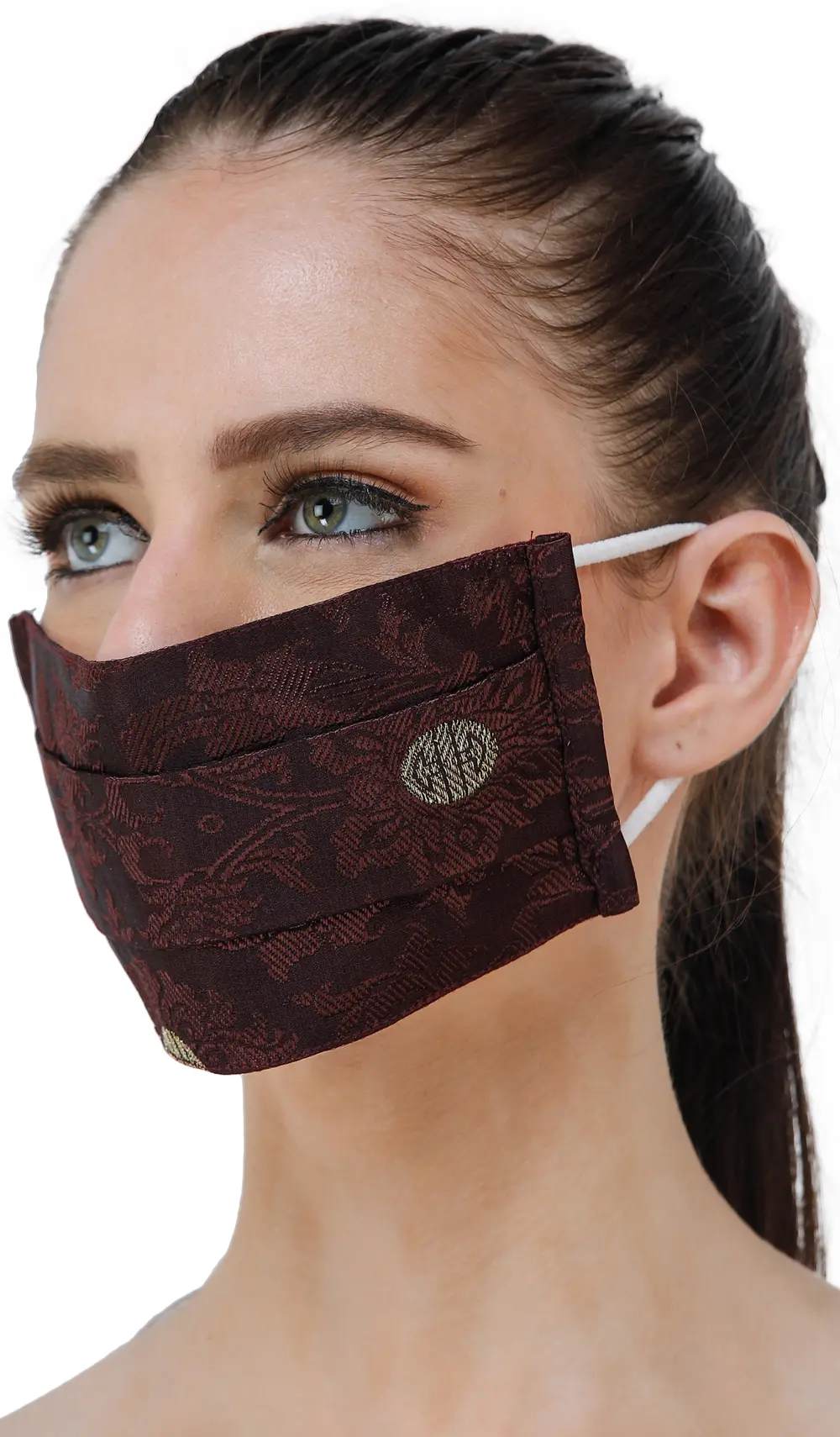 Chocolate-Truffle Two Ply Fashion Mask from Banaras with Self Weave and Chinese Good Luck Symbols