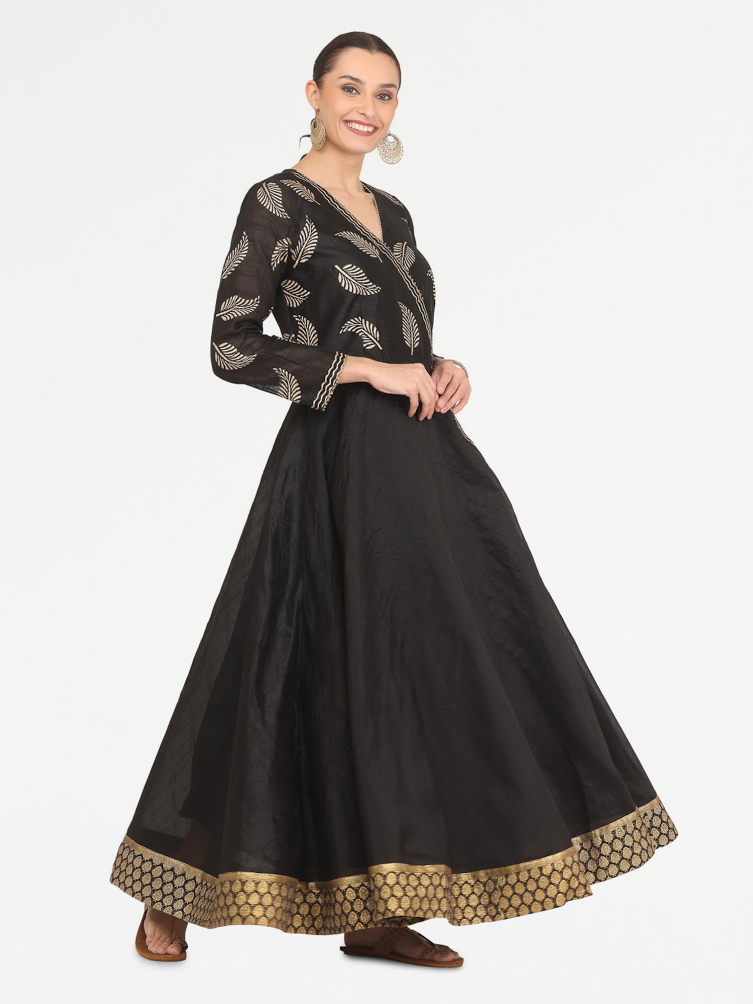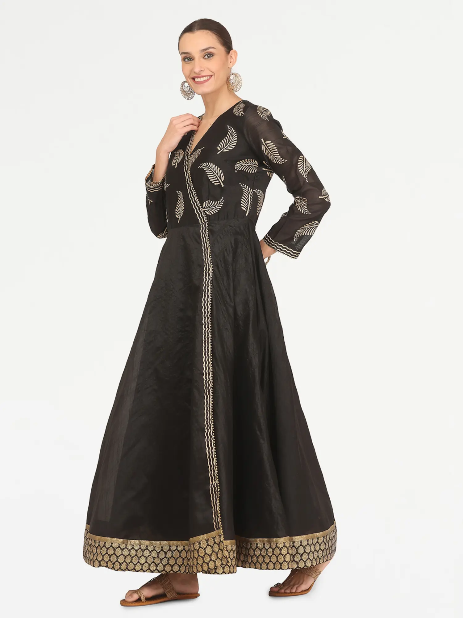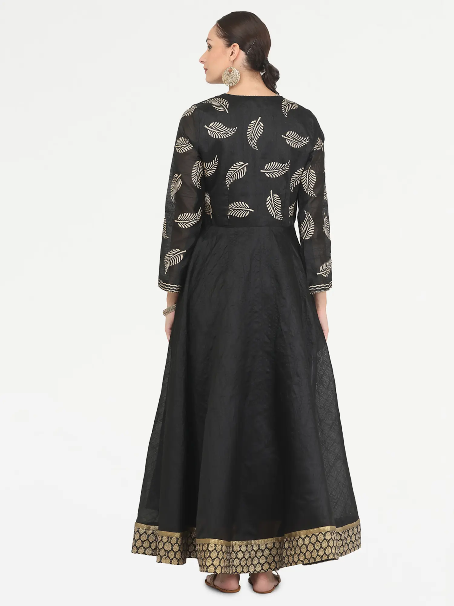 Batik-Dyed Dress with Threadwork and Printed Trees on Border