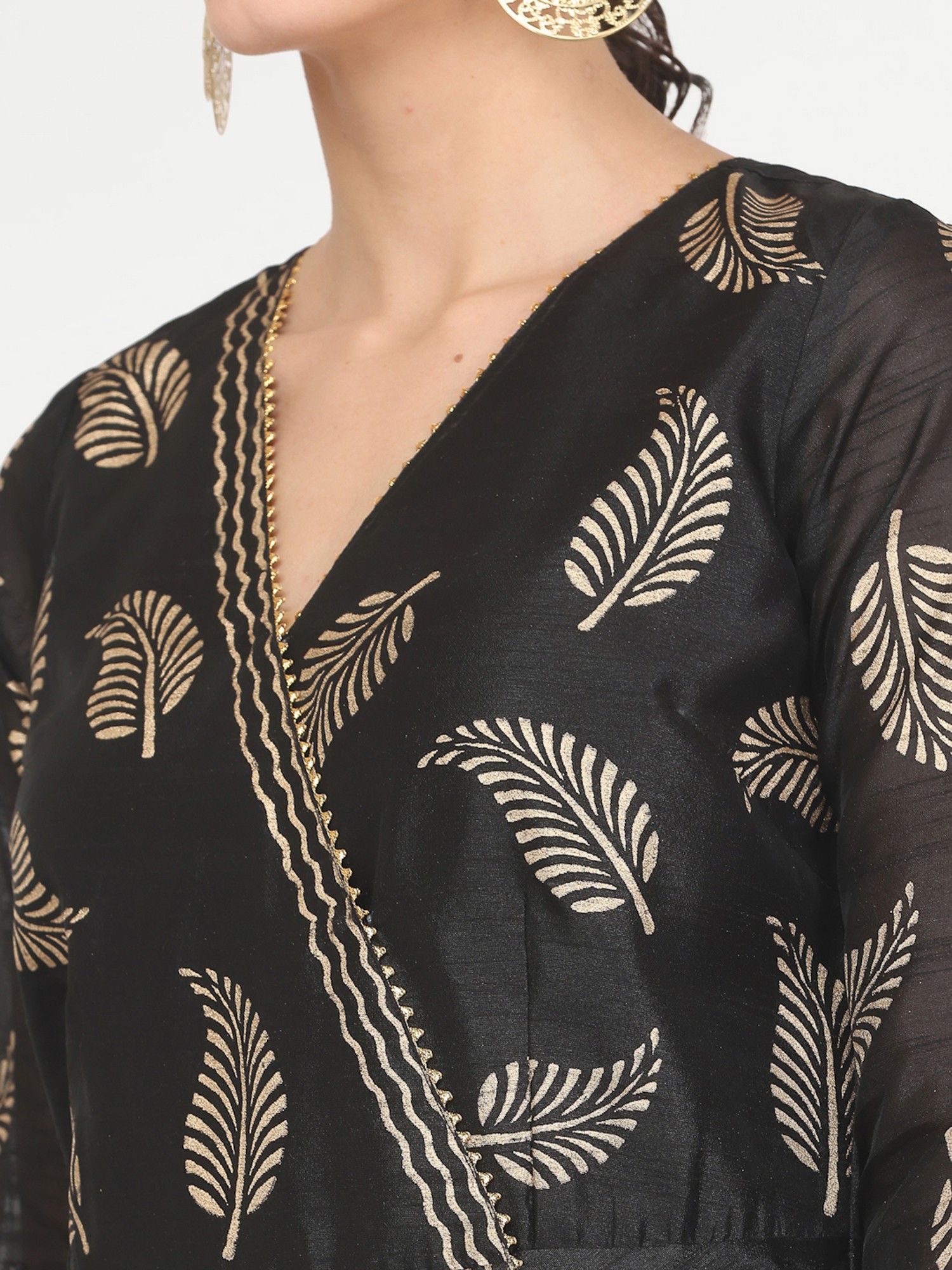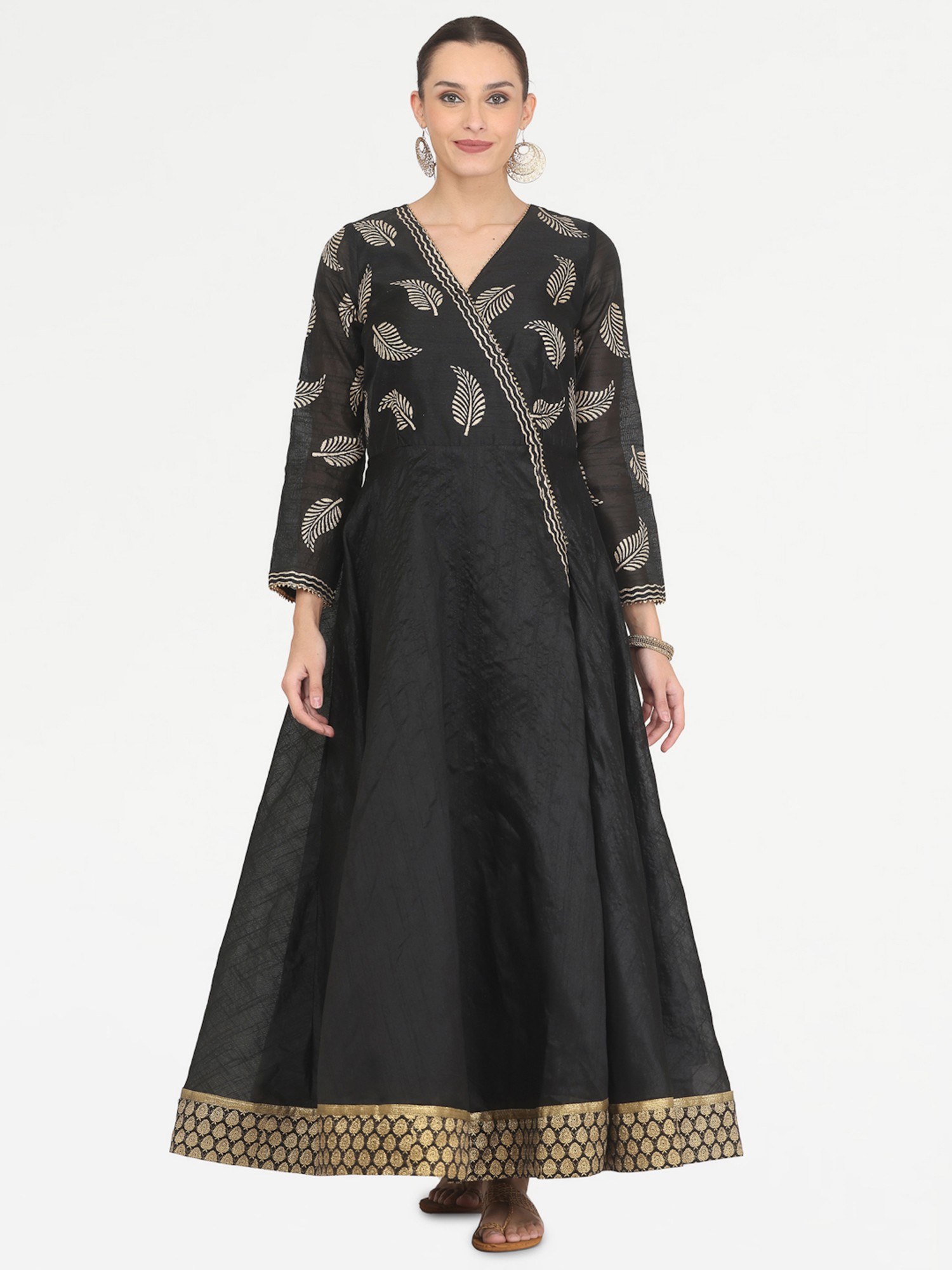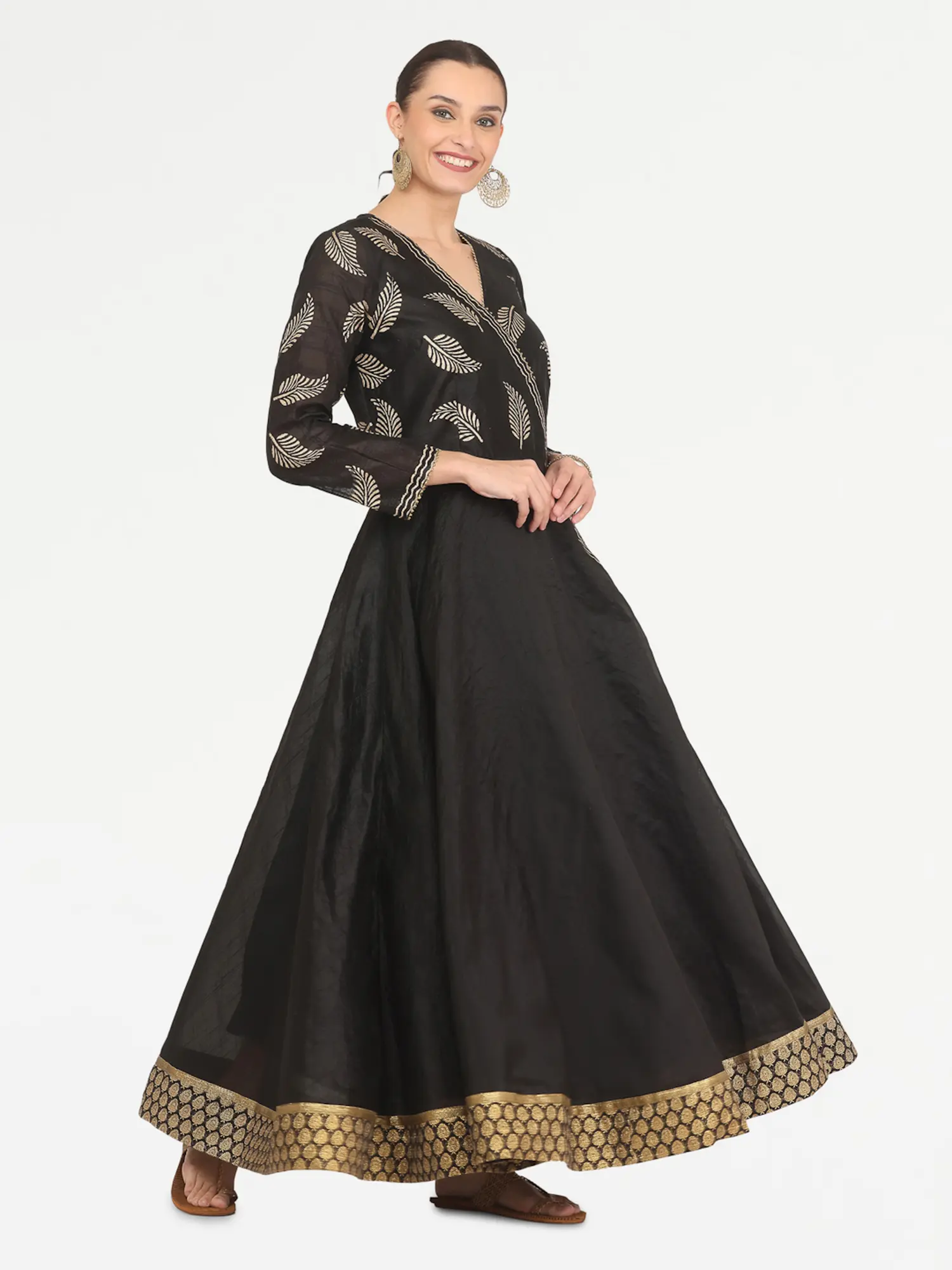 Batik-Dyed Dress with Threadwork and Printed Trees on Border