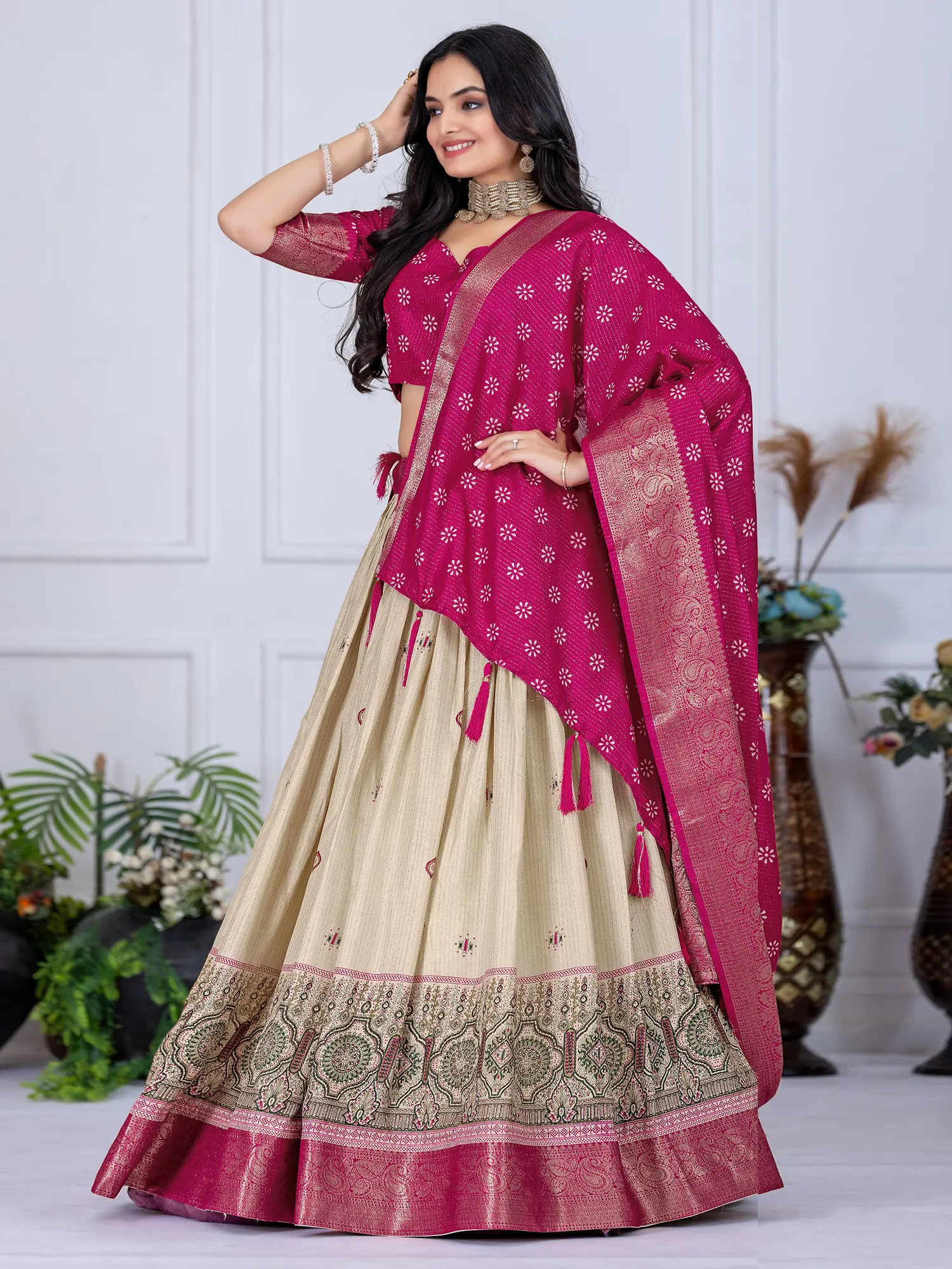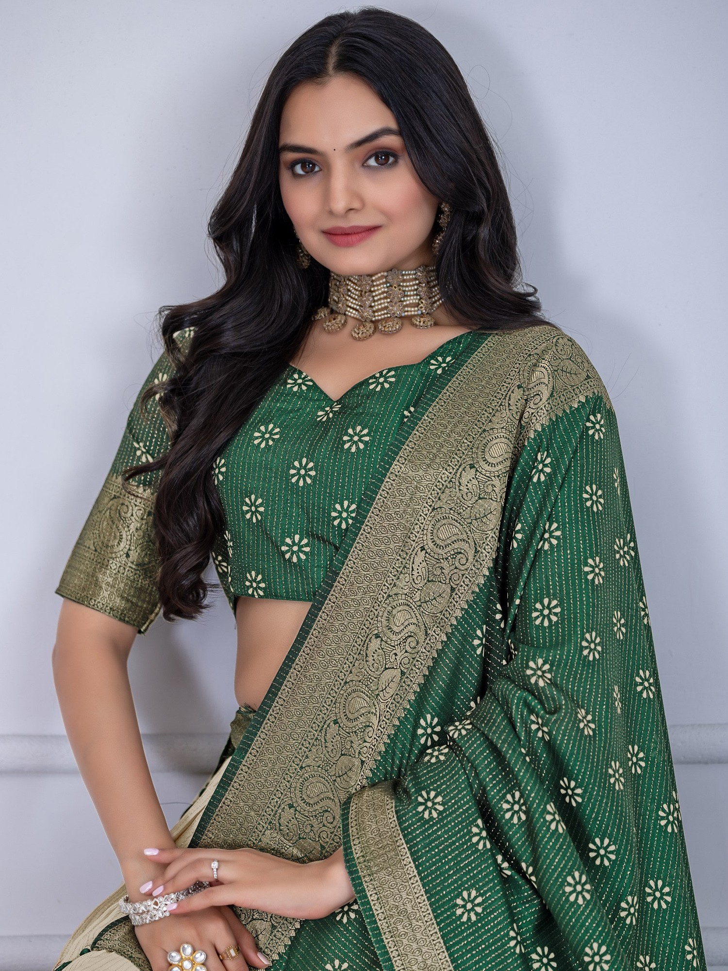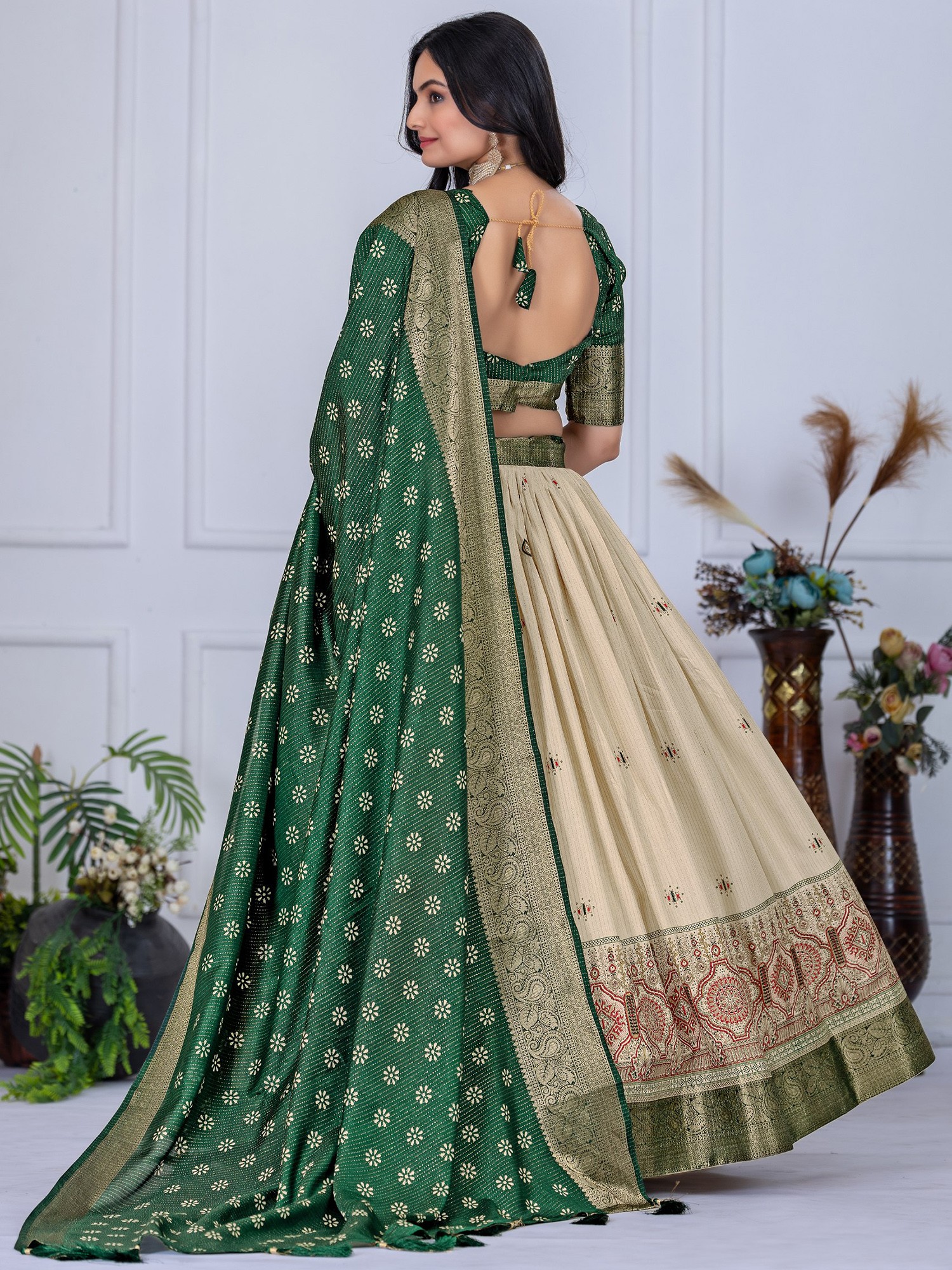 Rama-Green Jacquard Silk Woven Botis Lehenga Choli with Frings Dupatta