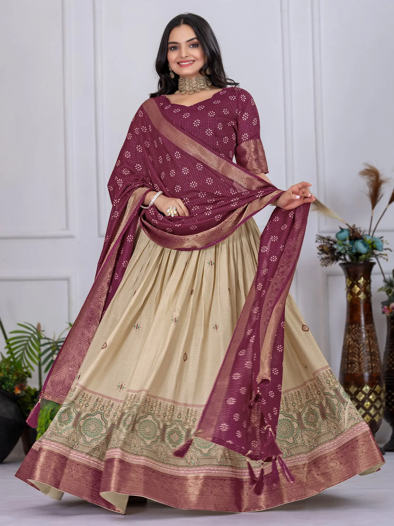 Maroon Taffeta Silk All Over Zari Butis Lehenga Choli with Soft Net Dupatta