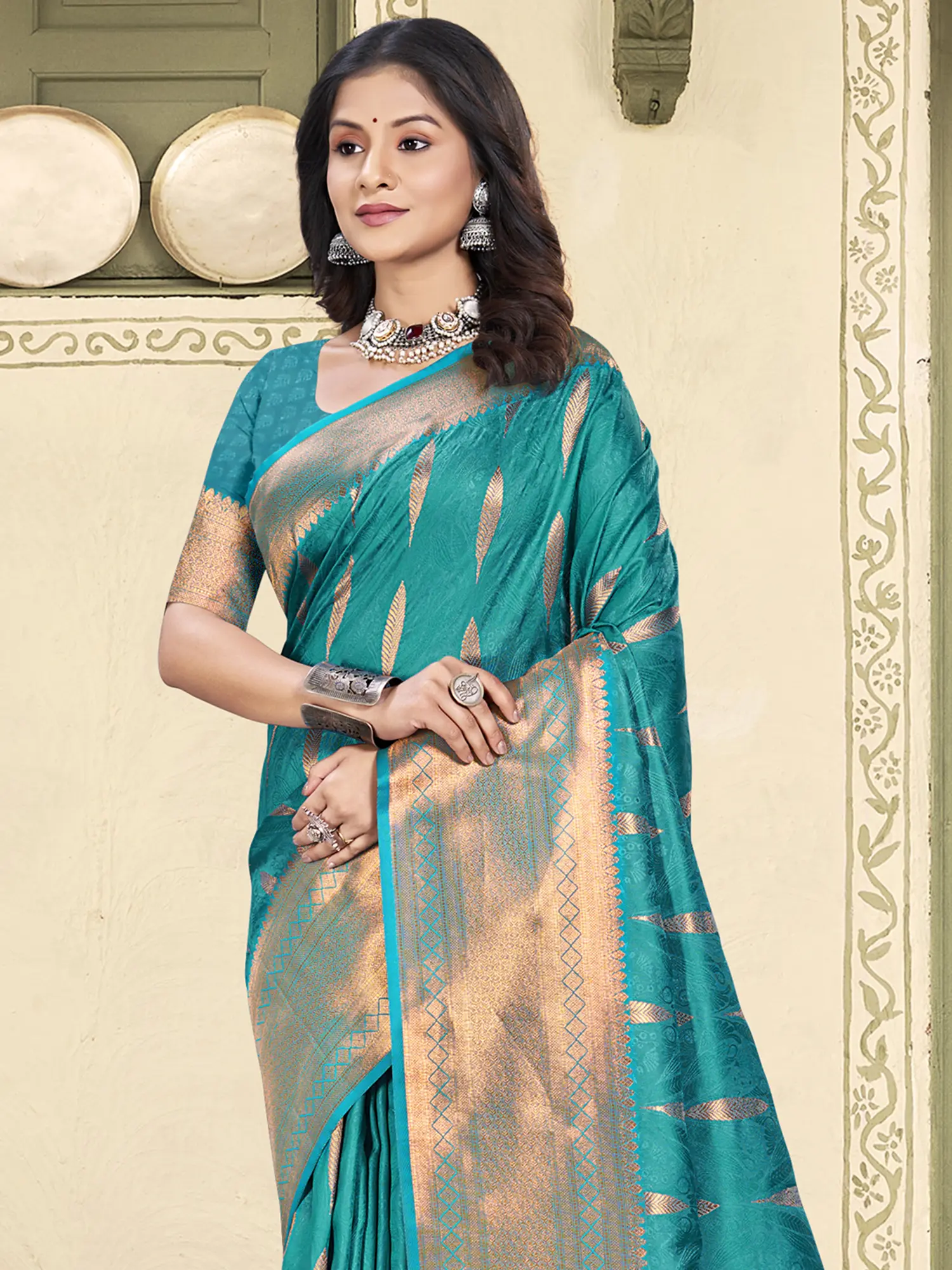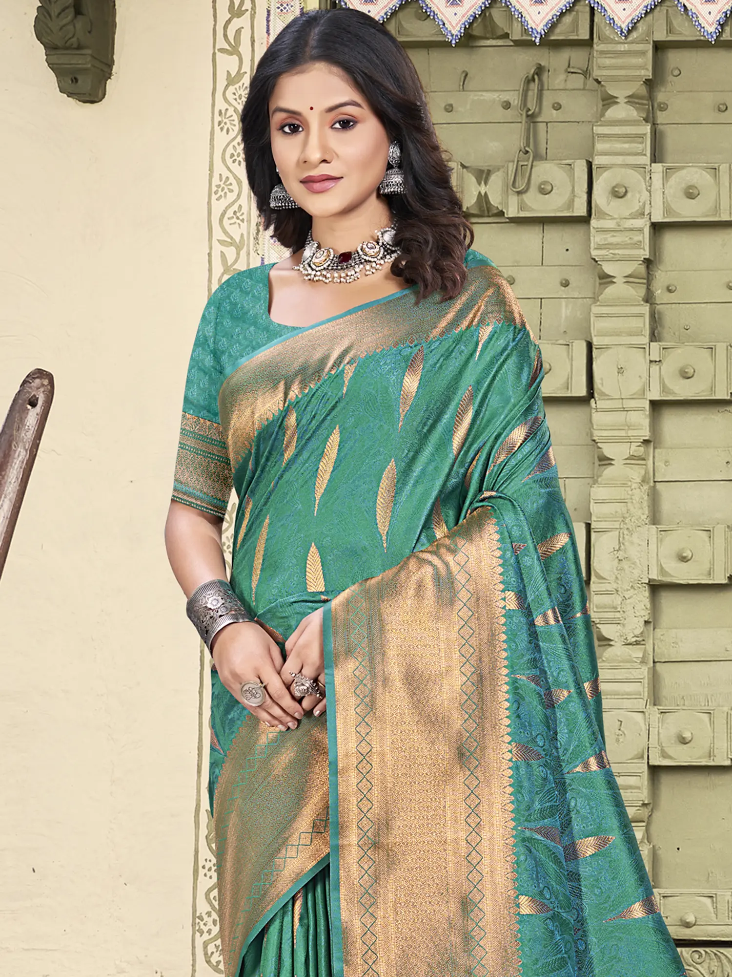 Pepper-Green Saree with Intricate Zari Thread Work Bootis and Floral Motifs Contrast Border-Pallu