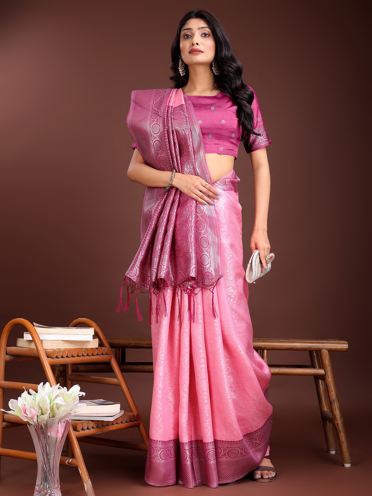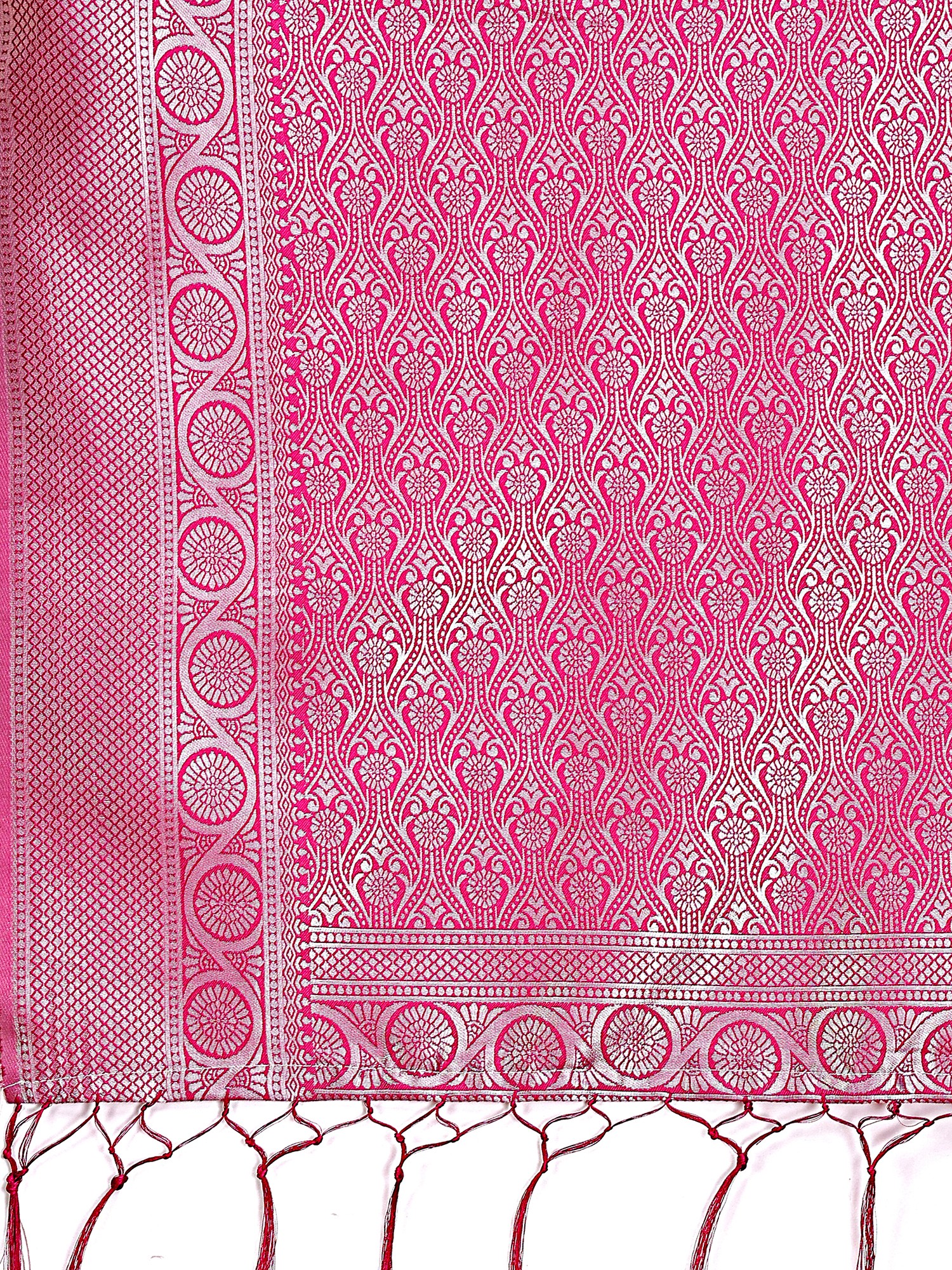 Silk Saree with Zari-Woven Border and Geometric Motifs All-Over