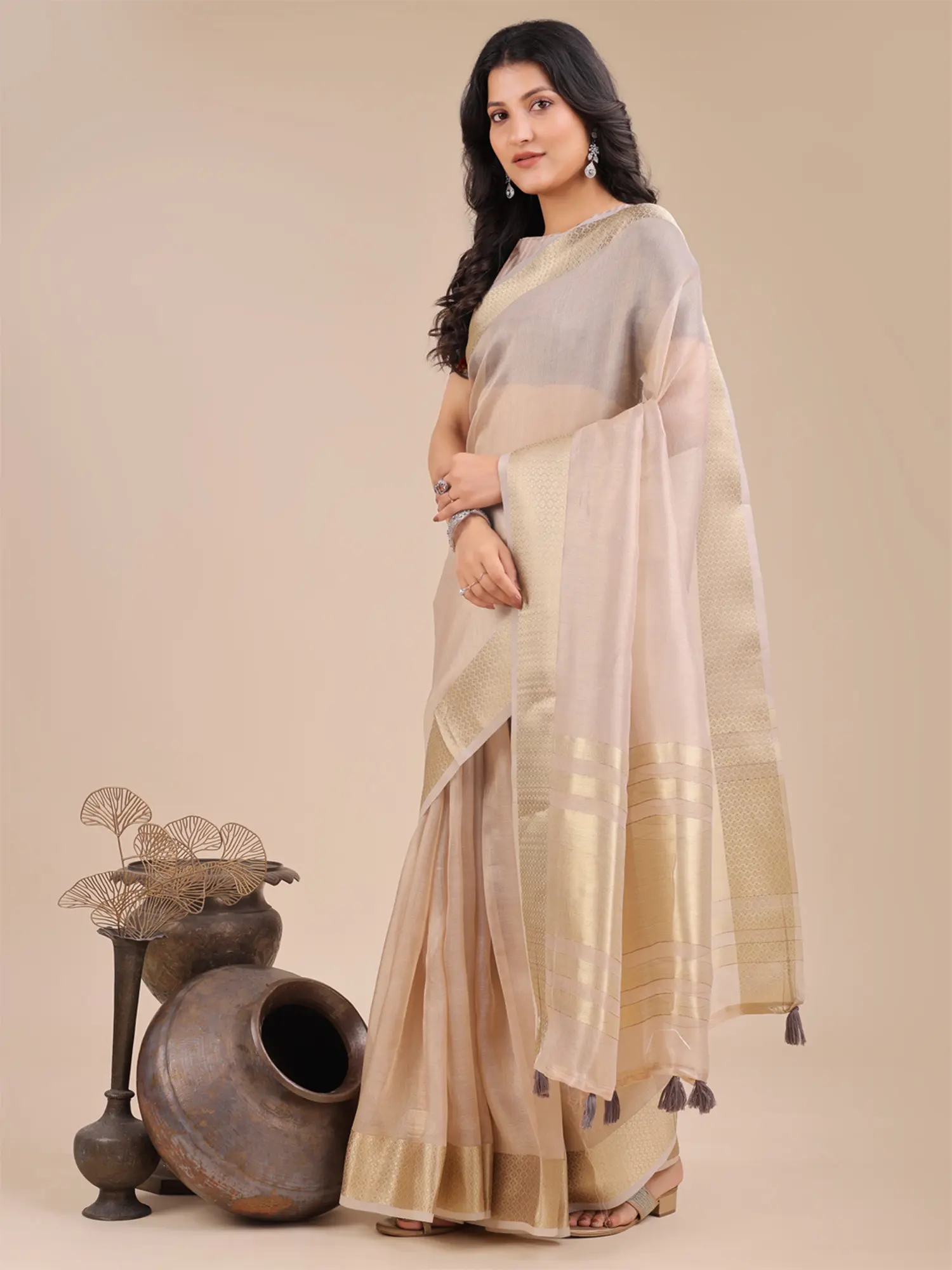 Radical-Red Small Motifs All Over Printed Semi Linen Attractive Saree With Designer Tassels Pallu
