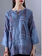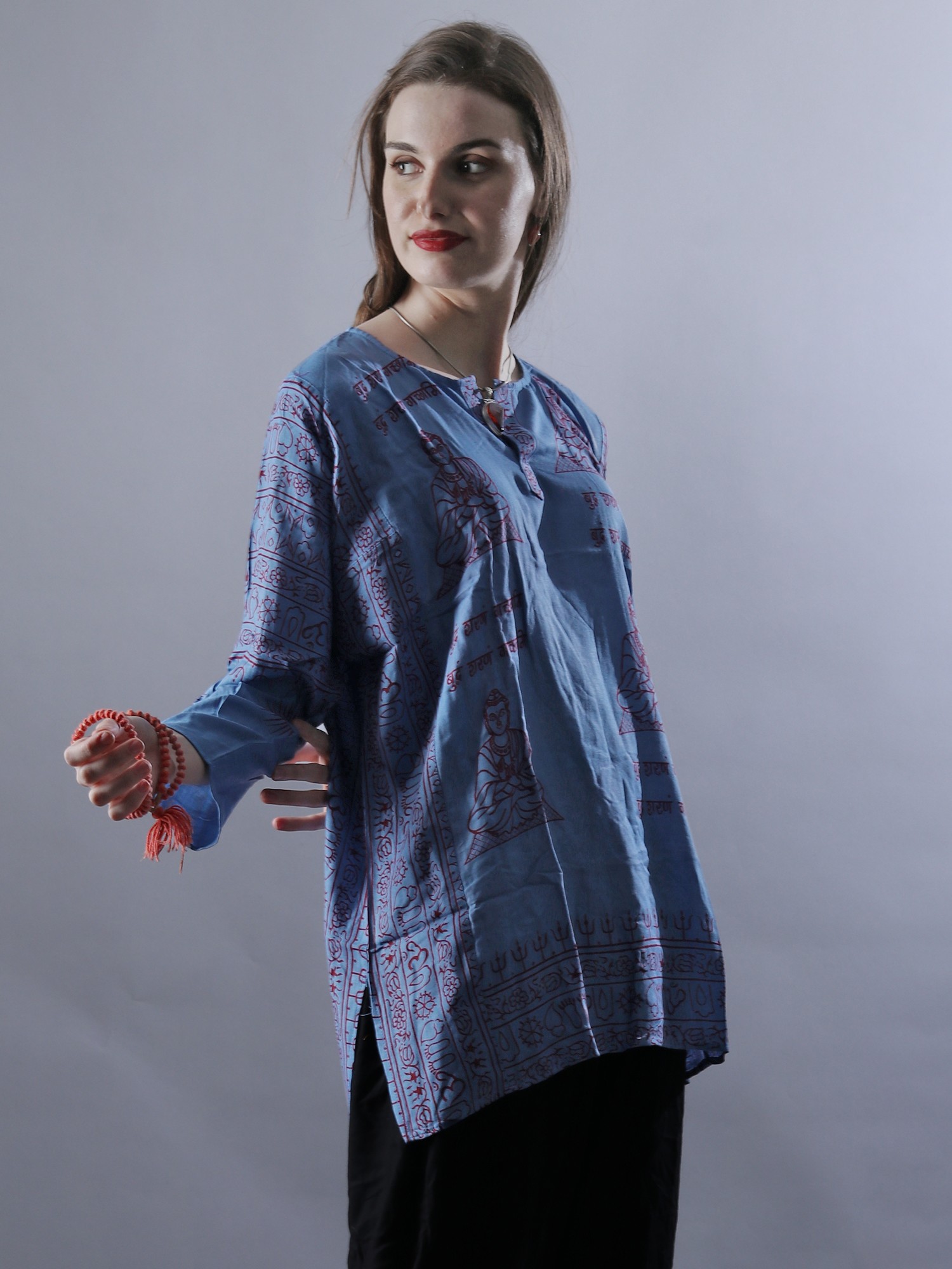 Cornflower-Blue Buddha And Buddham Sharnam Gacchami Mantra Printed Short Kurti With 3/4 Sleeves