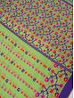 The field of the saree is decorated with tiny colorful motifs, which bring tinges of vibrancy to the drape. On the border we find parallel running lines in a darker tone to add a layer of shades to the saree.