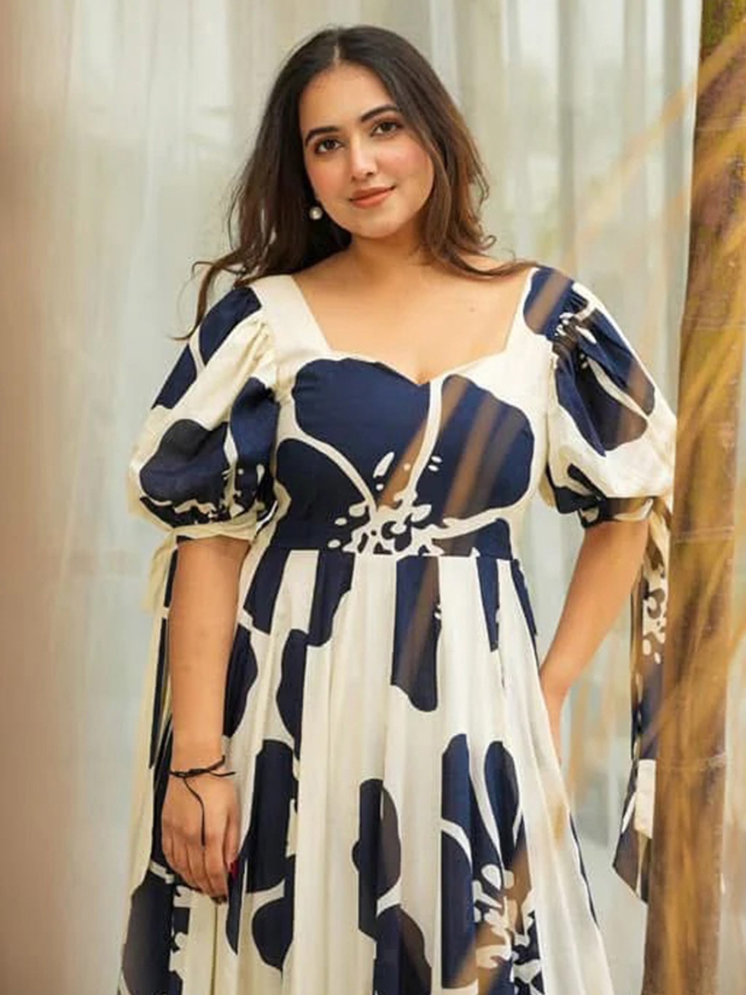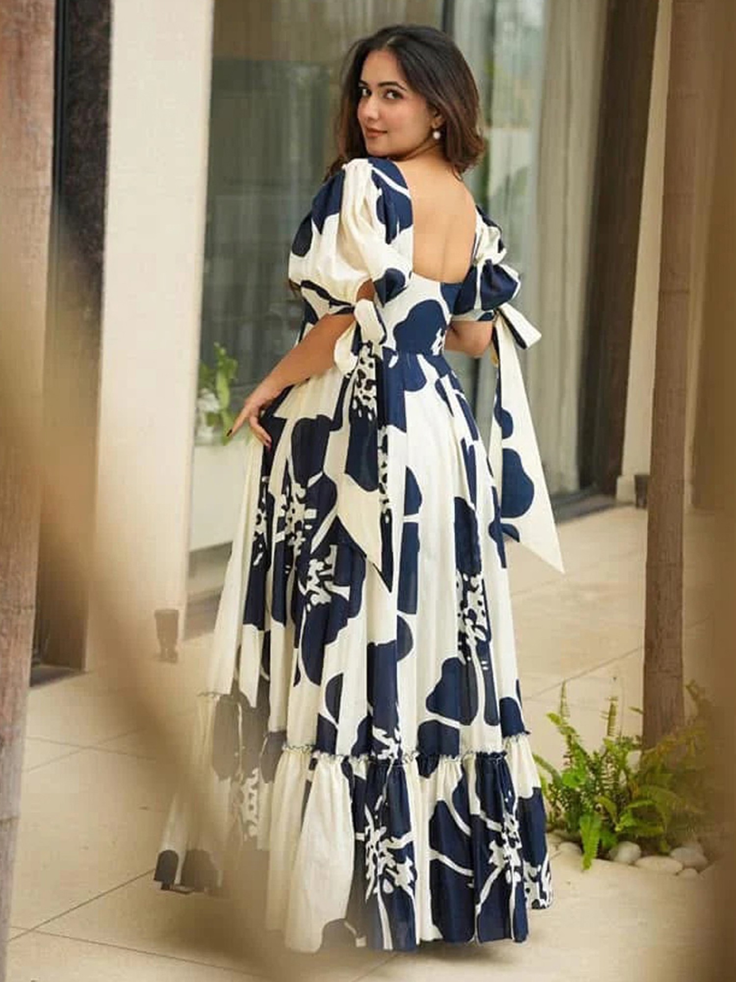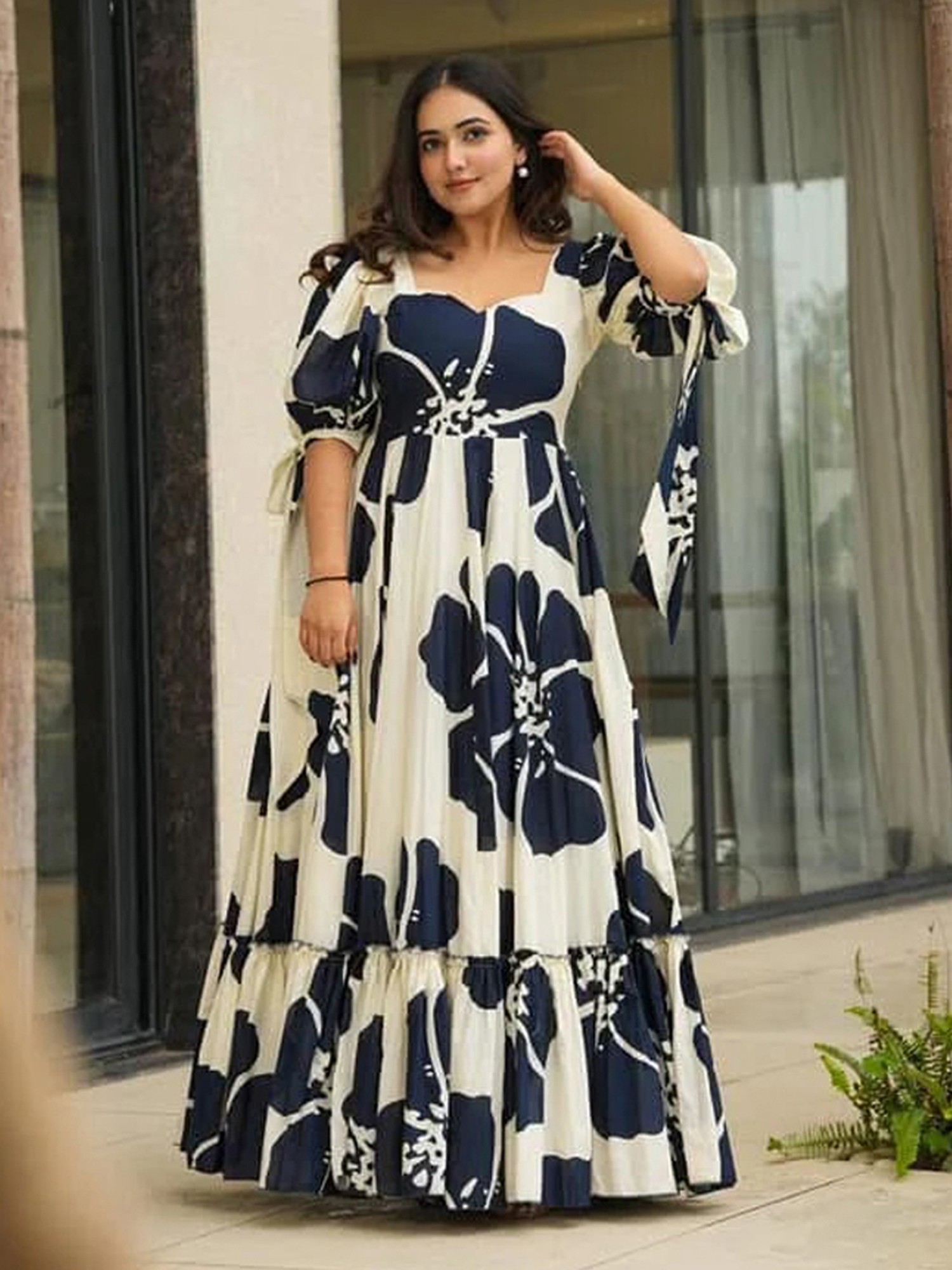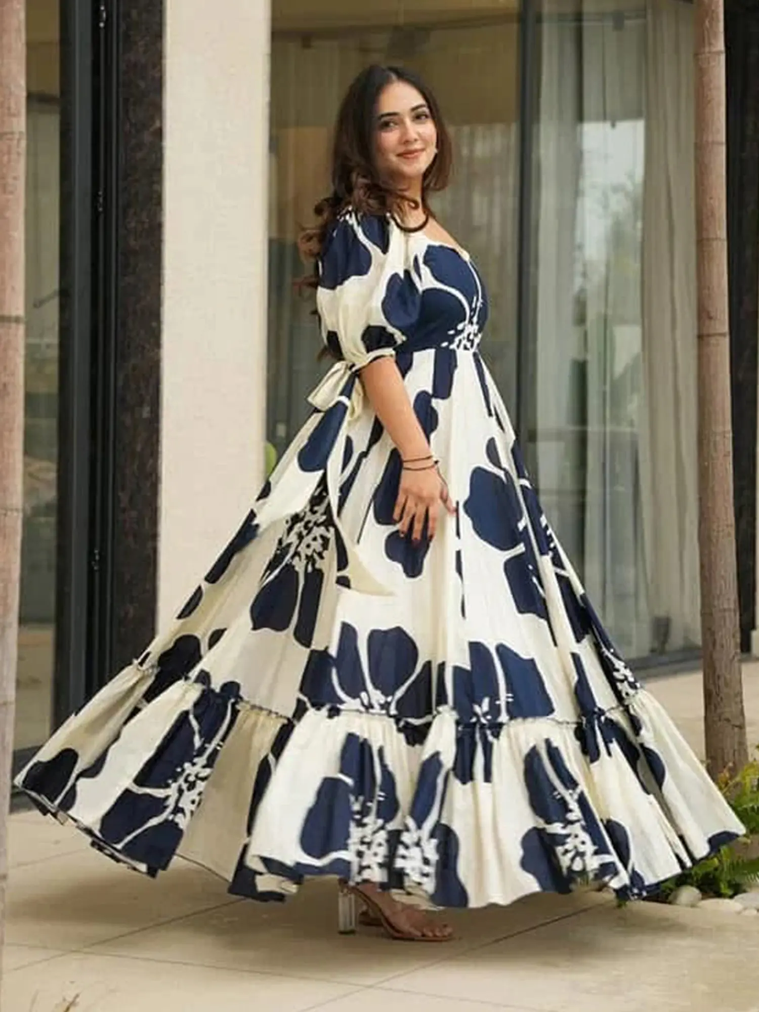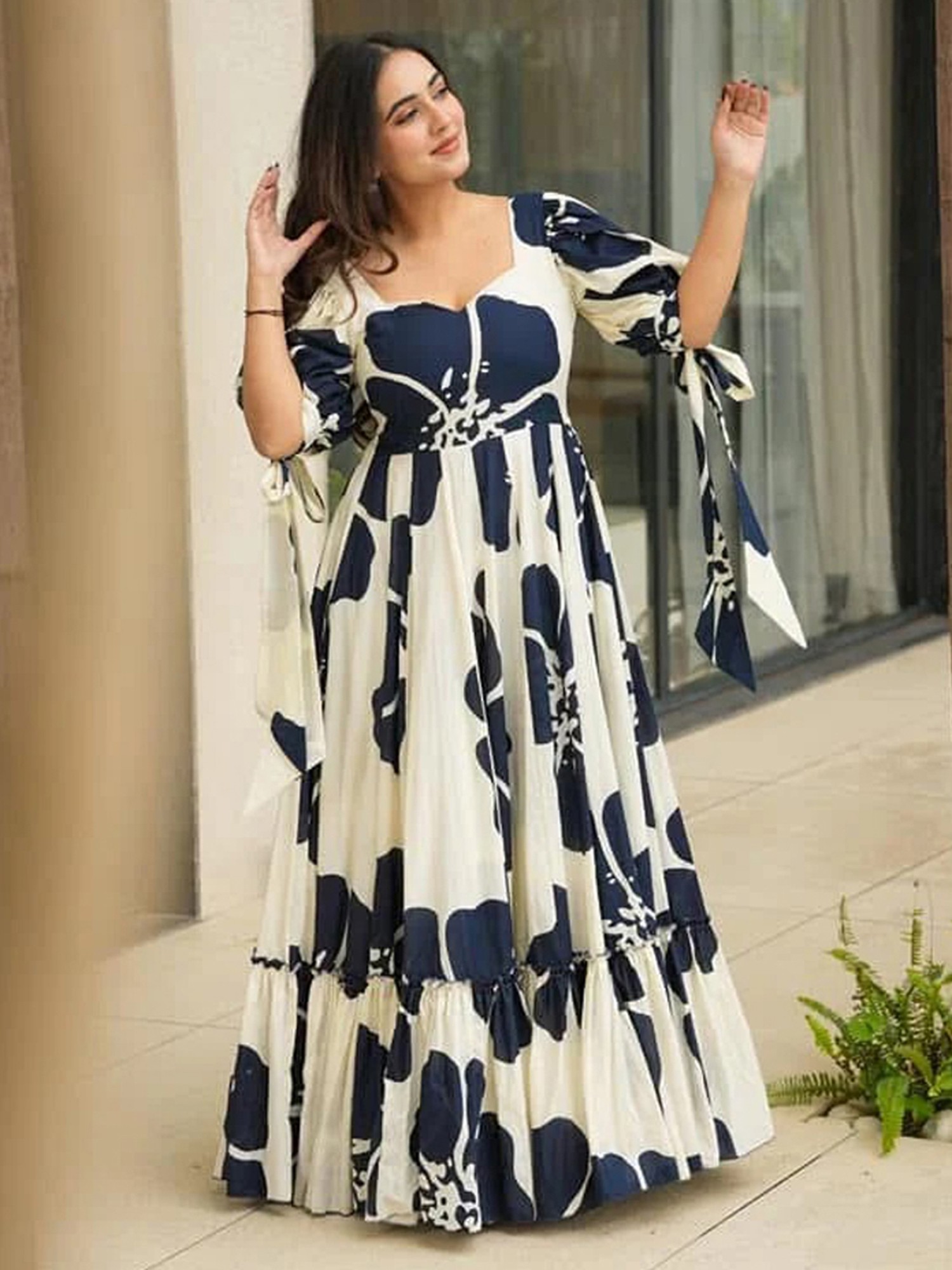 Cotton Shibori Printed Anarkali Style Gown with Sequins Embroidery
