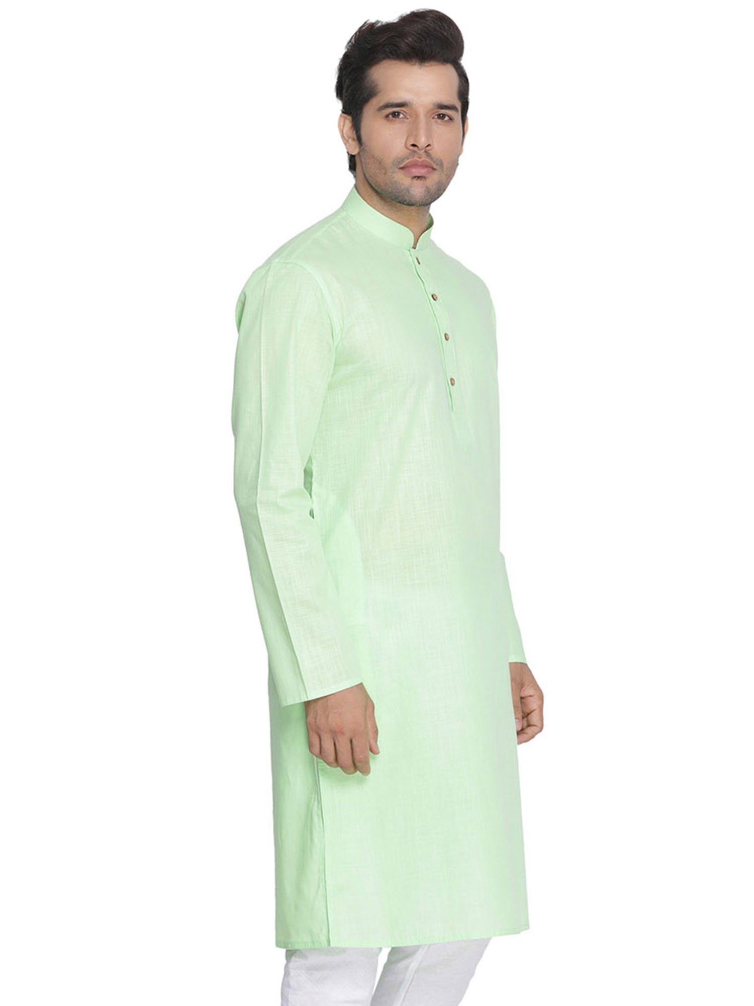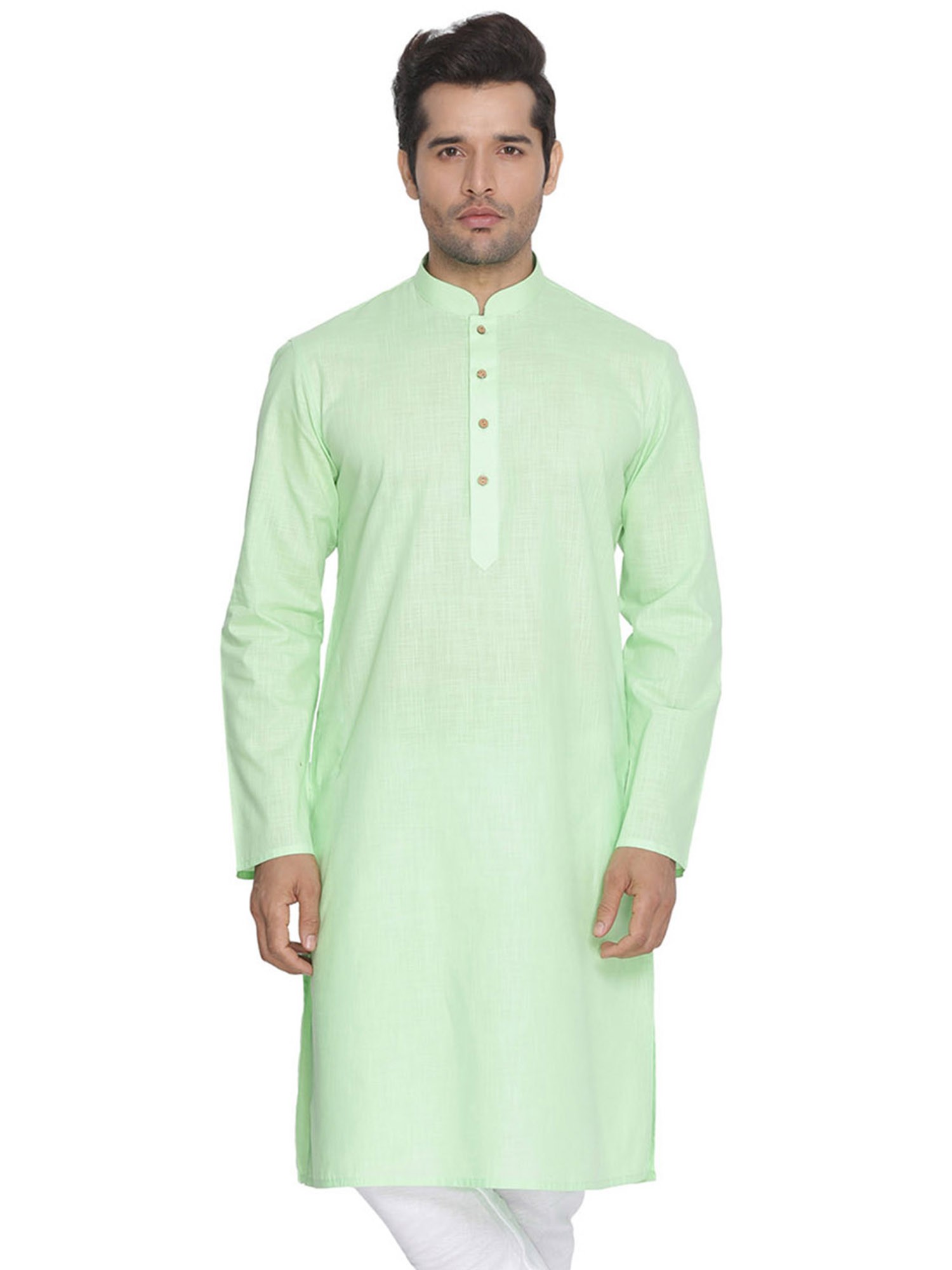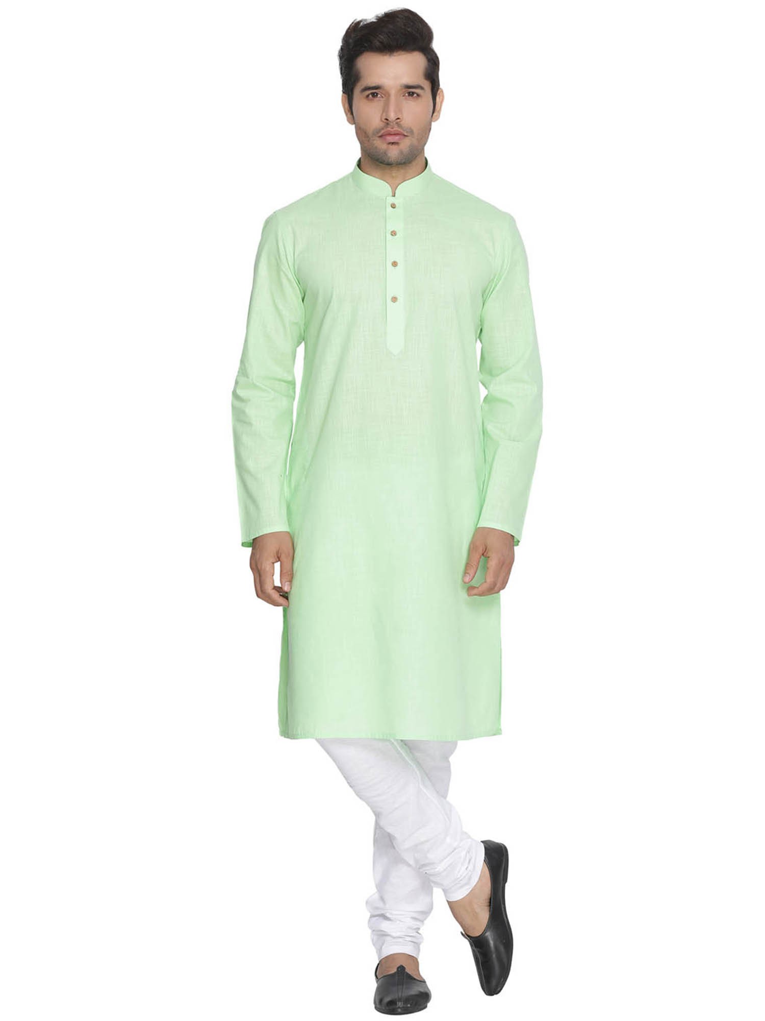 Plain Cotton Kurta with White Pajama Set